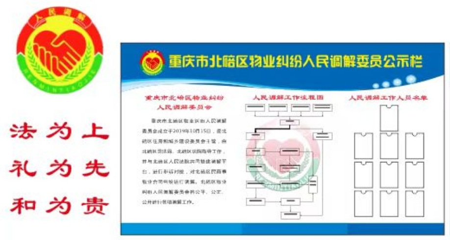 北碚区物业纠纷人民调解委员会于2019年成立,由北碚区物业协会抽调在碚物业企业15名行业专家组成,驻北碚区人民法院,负责对区内物业合同纠纷进行诉前调解。在北碚区住房城乡建设行业党委指导下,今年累计调解案件2351件,成功调解667件;自成立以来累计成功调解物业纠纷1450件。本周,荣获重庆市高级人民法院颁发“2024年度优秀驻院(庭)调解组织”荣誉称号。