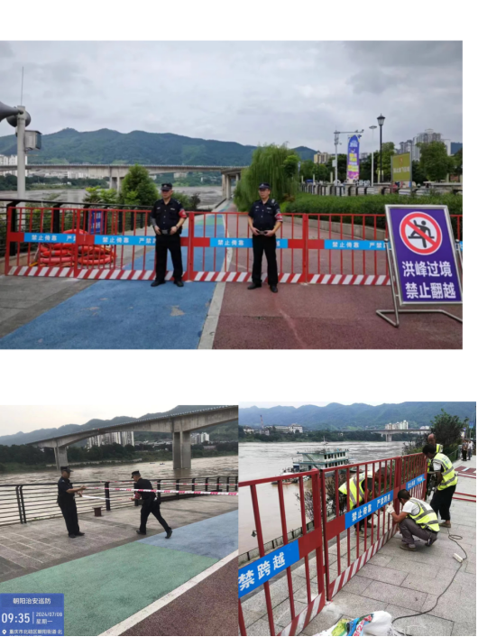 为应对洪峰过境,朝阳街道组织召开2次洪峰过境专题调度会,部署防范工作,压紧压实安全责任,要求加强沿江区域值班值守、志愿者队伍文明劝导、设置挡板及警示标识等,全力以赴保障人民群众的生命财产安全