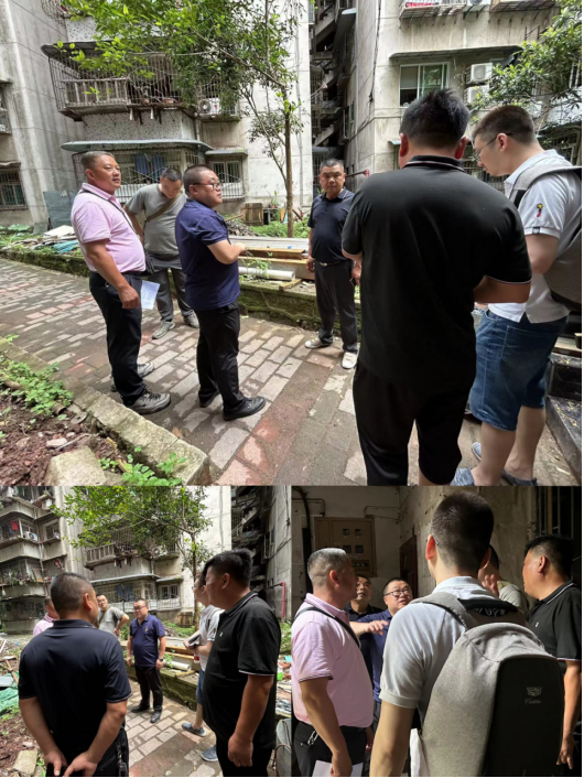 朝阳街道、重庆佳友物业有限公司、重庆大学建筑规划设计研究总院有限公司共同商议吉林巷老旧小区改造工作。