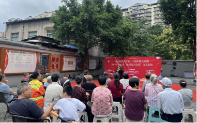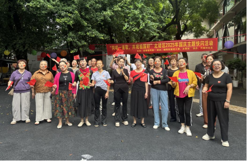 河嘉村社区开展“同唱一首歌,共祝祖国好”北碚区2025年国庆主题快闪活动,现场居民挥舞国旗齐唱《歌唱祖国》《我和我的祖国》等红歌,嘹亮歌声点燃爱国热情。