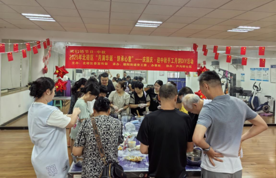 芦沟桥社区在作孚广场开展“庆传统佳节,展社区风采——2025年‘月满华诞,家国同庆’庆国庆·迎中秋文艺展演”,吸引众多居民观看。同时还开展了“2025年北碚区‘月满华诞·饼承心意’——庆国庆·迎中秋手工月饼DIY活动”。丰富活动让社区居民感受浓浓双节情。