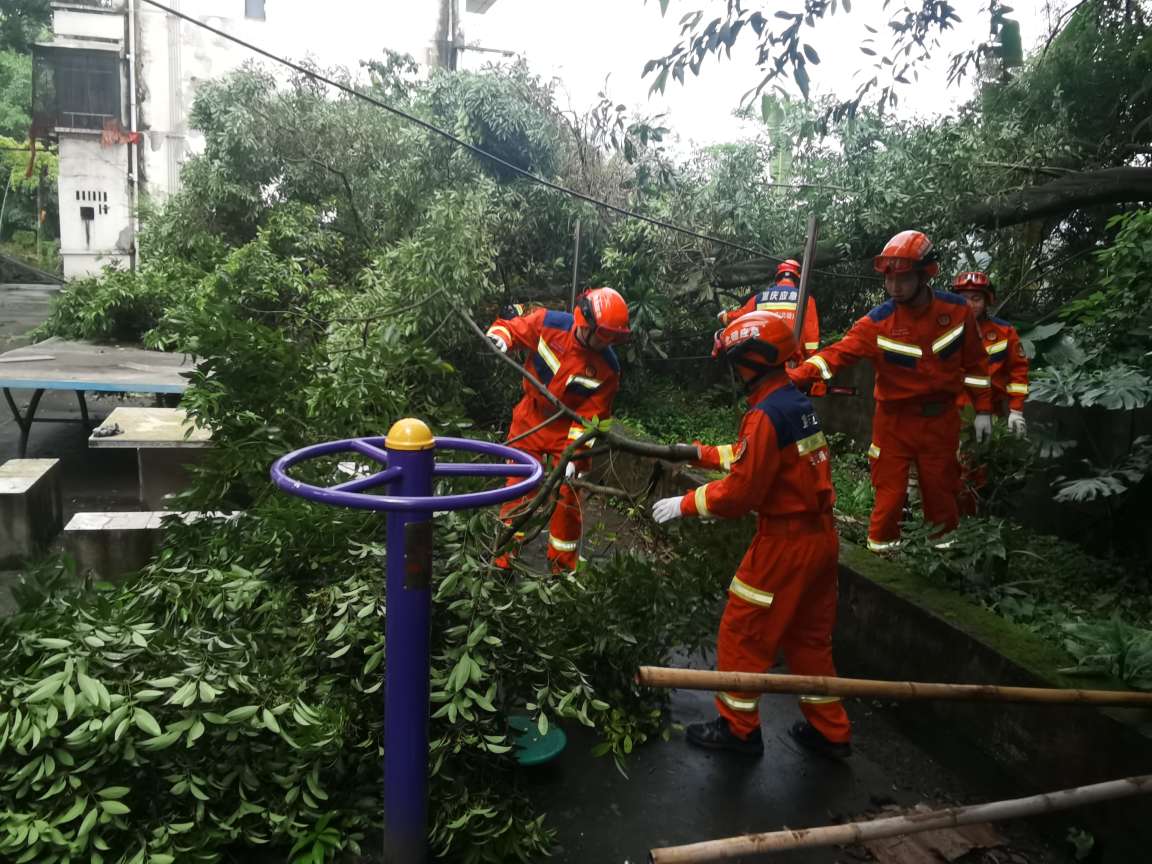 因持续强降雨导致树木倒伏,民权村、运河社区、转龙村等多个村(社区)先后出现道路阻断、围墙及通道受威胁等紧急情况。接到群众反映后,澄江镇专职消防队不等不靠、主动作为、立即行动,在澄江镇的统一调度下迅速奔赴各隐患点位。队员们顶着风雨,利用油锯等专业设备对倒伏树木进行分段切割、修剪分解,并同步清运枝干;属地村(社区)干部配合拉设警戒线、疏导过往车辆及行人、提醒周边居民注意安全避让。经过连续紧张作业,民权村大巴公路、运河社区金果园居民楼旁以及转龙村多处倾倒树木全部处置完毕,道路恢复畅通,安全隐患彻底消除,居民生活秩序恢复正常。澄江镇专职消防队与镇村协同作战,为人民群众排忧解难,解决了后顾之忧。