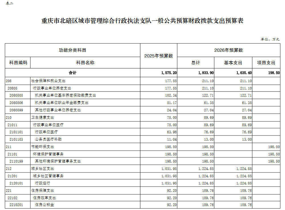 重庆市北碚区城市管理综合行政执法支队2026年单位预算情况说明及附表.pdf
