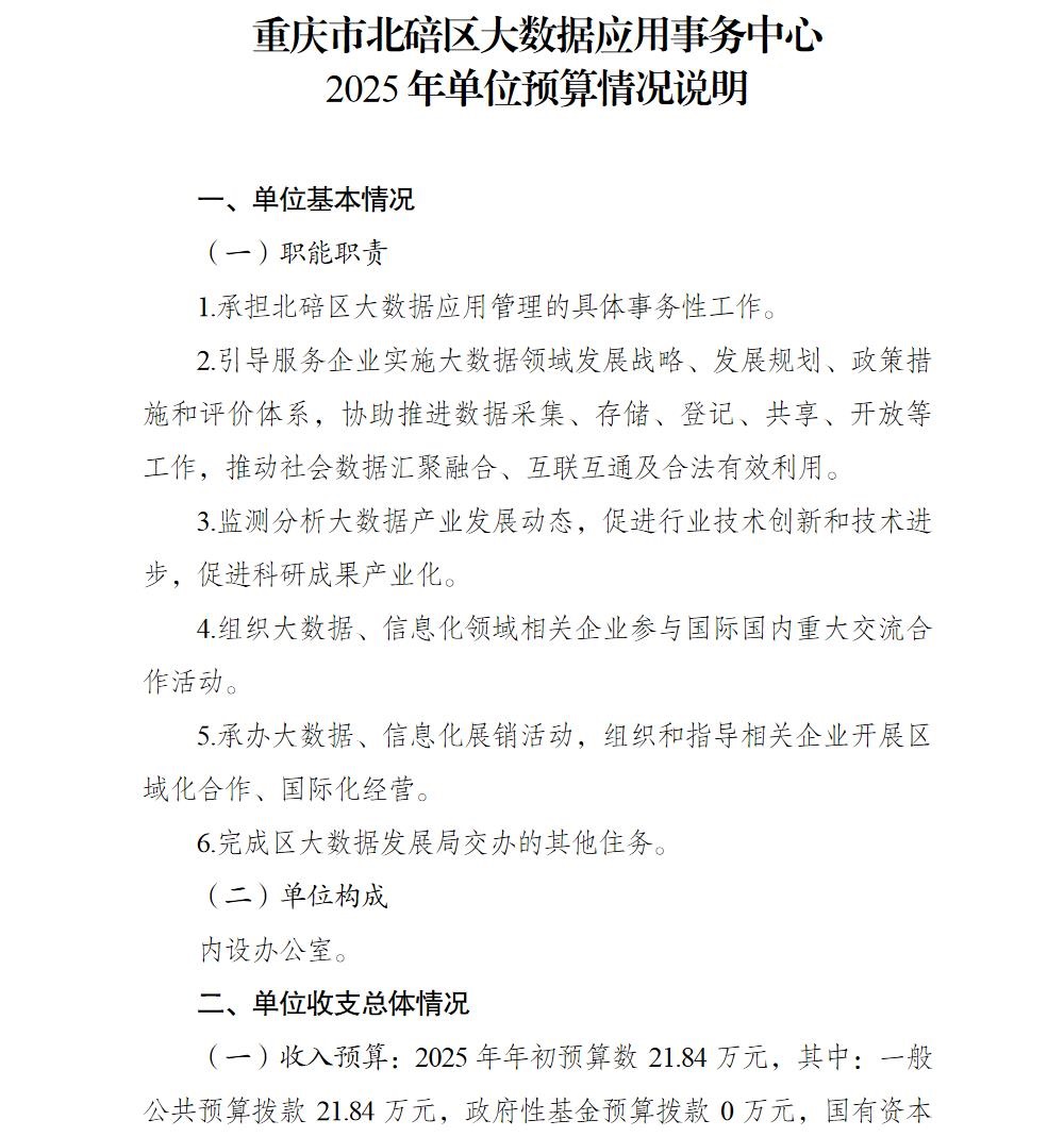重庆市北碚区大数据应用事务中心2025年单位预算情况说明及附表.pdf