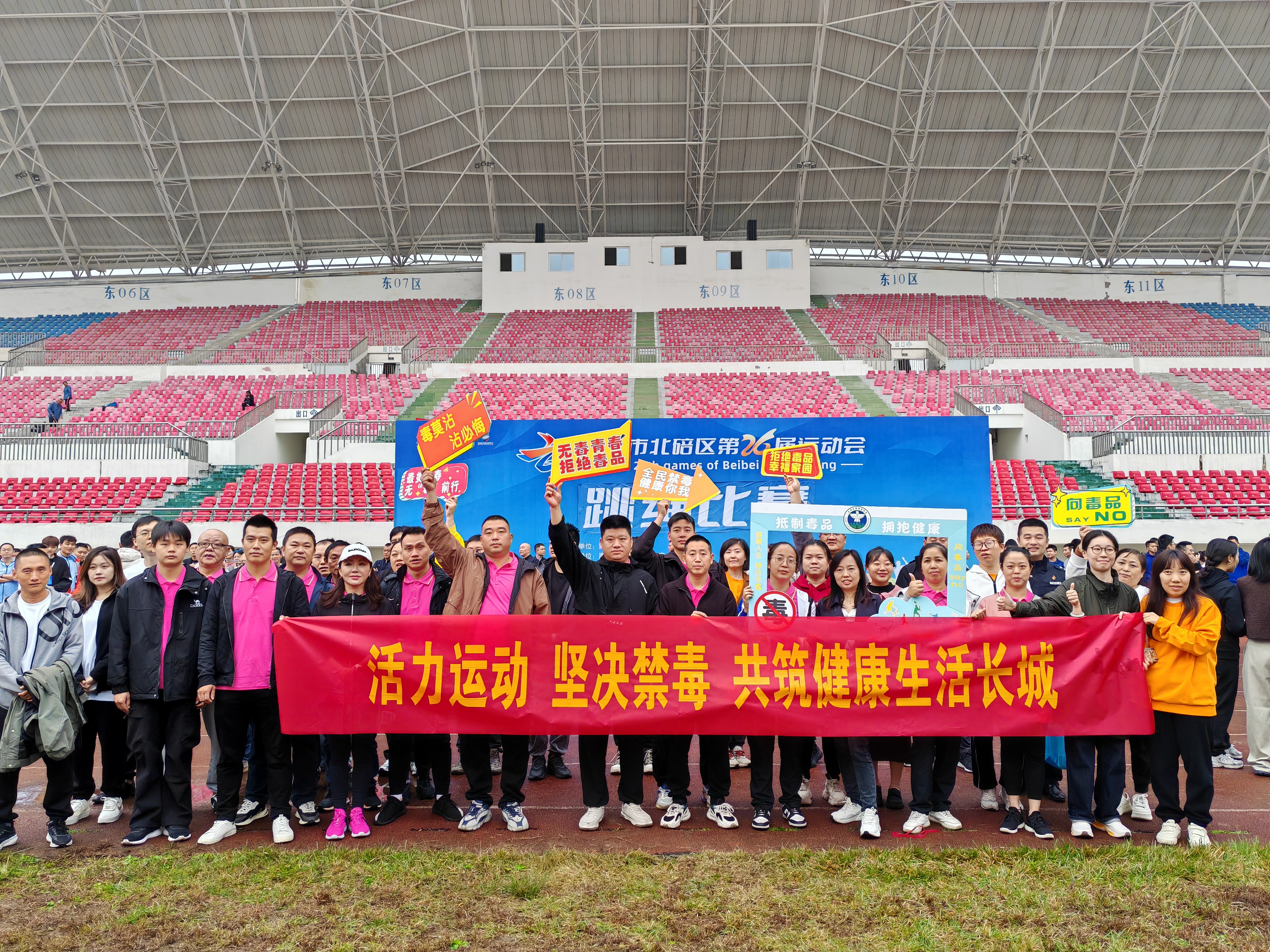 为进一步提升毒品预防教育认知,11月12日,区公安分局联合西山坪强制隔离戒毒所来到北碚区第26届运动会场地—城南体育场,向广大群众和运动员宣传禁毒知识,传播禁毒理念。