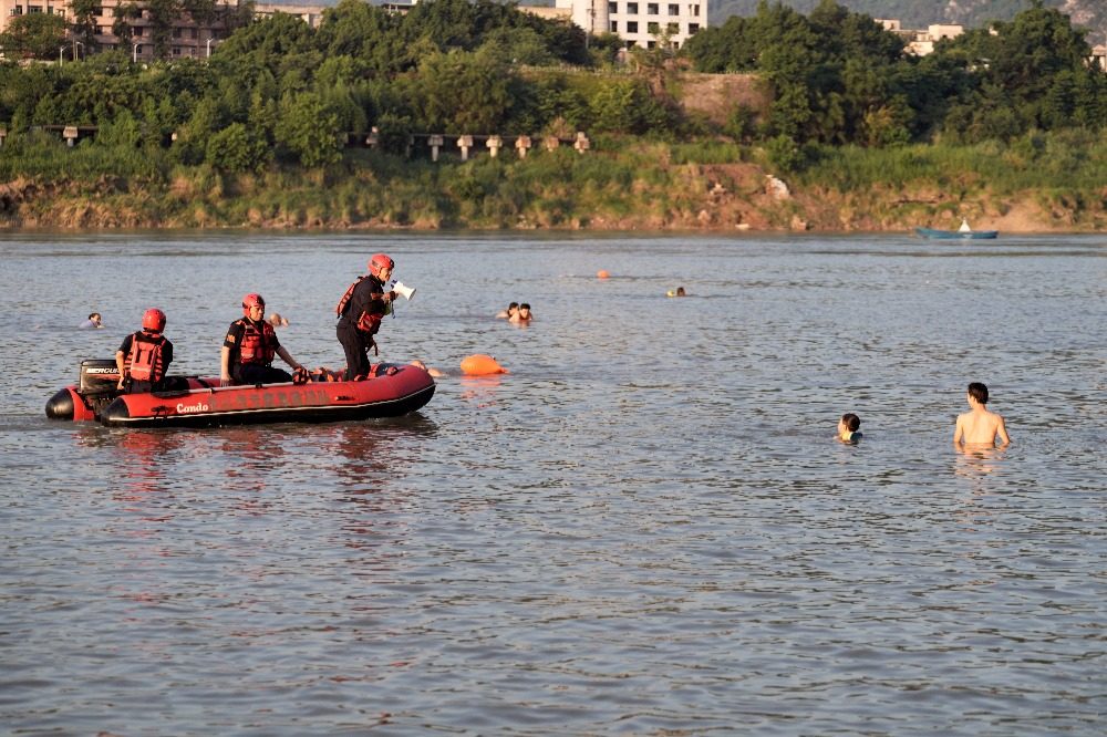 嘉陵江畔,暑气蒸腾。北碚公安联合团区委开展的联合巡江行动正如火如荼。空中,无人机化身“千里眼”,在民警的操控下沿江穿梭盘桓,搭载的高音喇叭反复提醒“请远离危险水域”,像一道无形的警戒线圈住沿江区域的安全。水上,志愿者驾驶着冲锋舟,在重点水域巡航,他们反复叮嘱正在戏水的市民:“这片水域有暗流,千万别大意!”岸边,陆上巡逻组徒步排查安全隐患,逐一检查警示标识是否完好,遇到靠近危险区域的市民耐心劝阻:“大爷,这水看着浅但是落差大,一旦踩空就危险了”。空中、水面与岸边的力量无缝联动,共同织成了一张细密的夏季防溺水安全网,守护着水域的平安。