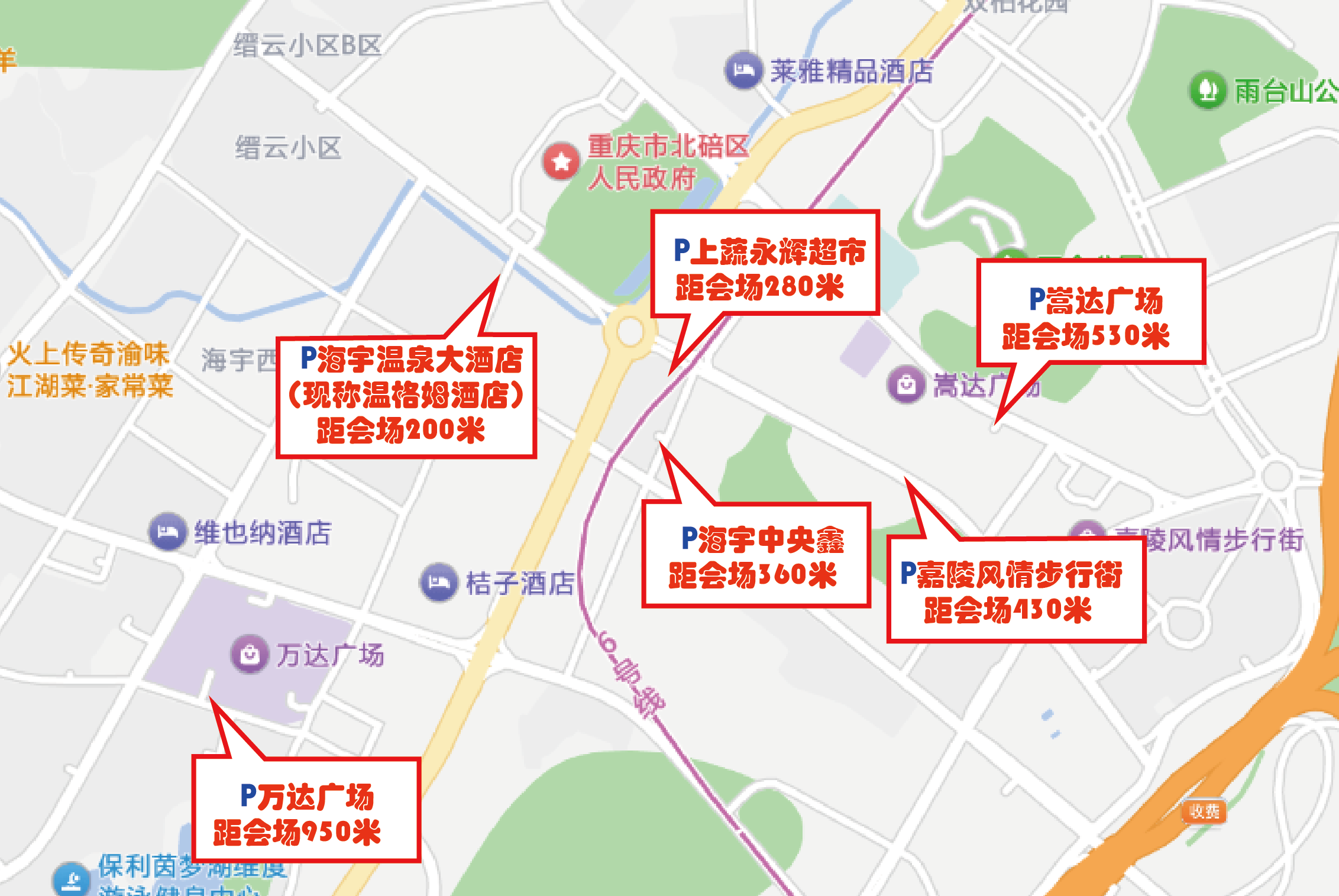 建议采用“P+R”停车换乘的模式,将车停放在轨道交通沿线的公共停车场,再换乘公共交通抵达活动场地周边。