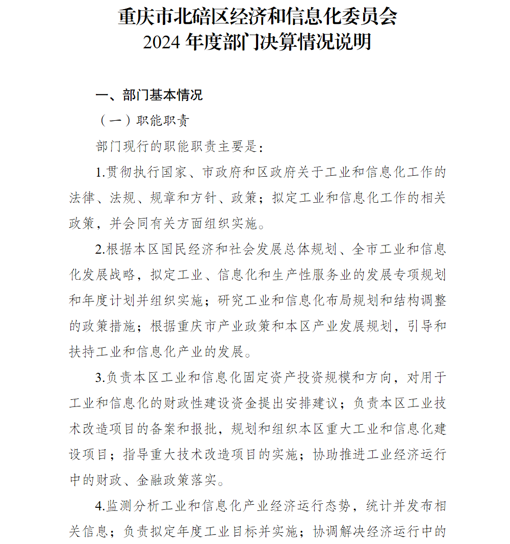重庆市北碚区经济和信息化委员会 2024 年度部门决算情况说明