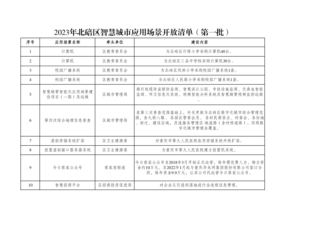 2023年北碚区智慧城市应用场景开放清单(第一批)