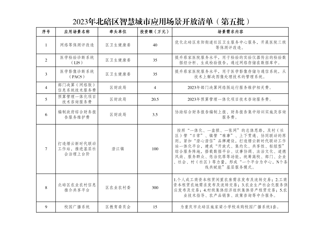 2023年北碚区智慧城市应用场景开放清单(第五批)