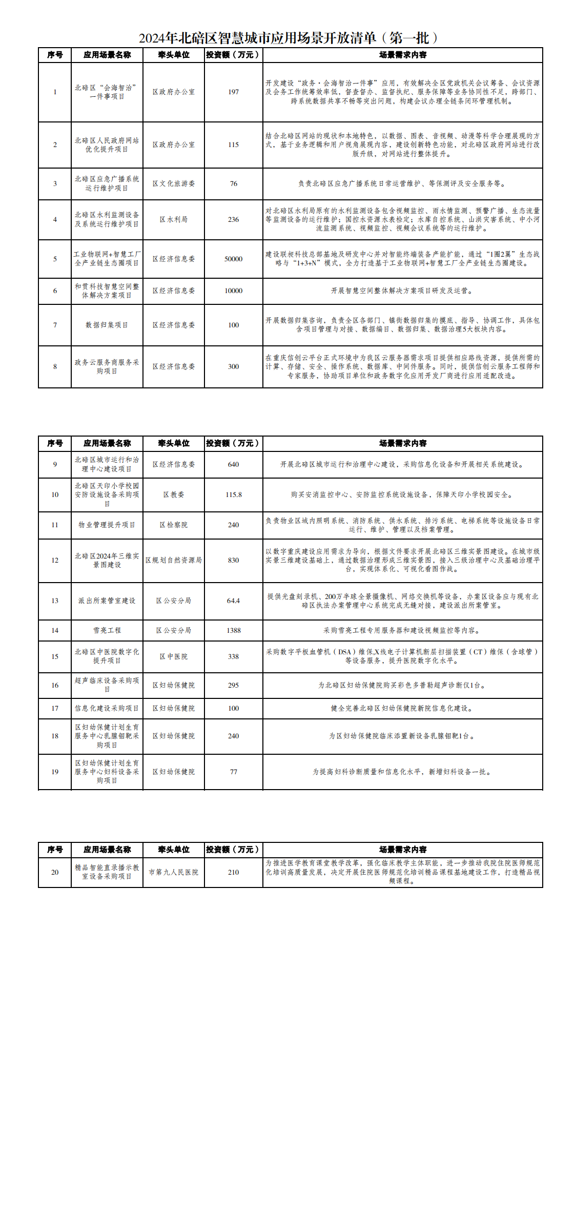 2024年北碚区智慧城市应用场景开放清单(第一批)
