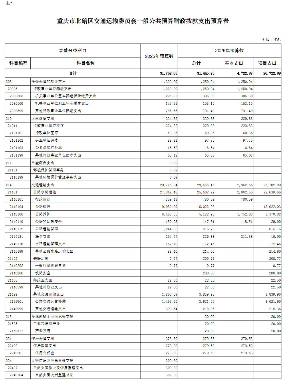 重庆市北碚区交通运输委员会2026年部门预算情况说明及附表.pdf
