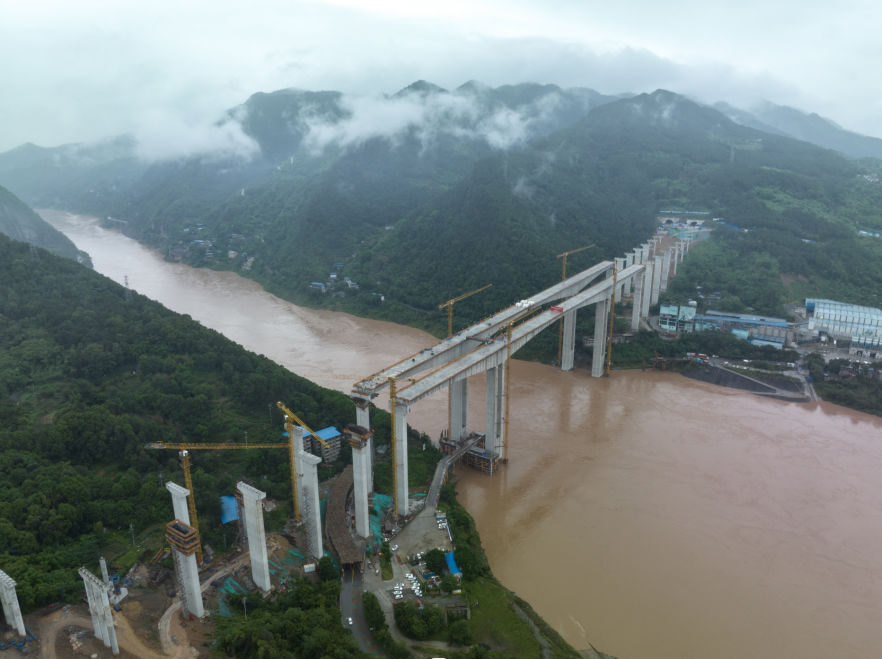 作为渝武高速公路复线的控制性工程,观音峡嘉陵江特大桥是目前国内在建桥梁中最大跨径的刚构桥梁,大桥主跨235米,左幅桥1070.5米,右幅桥1260.5米,最高墩近95米,相当于32层楼高。