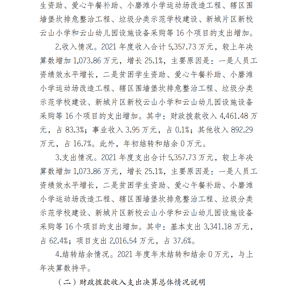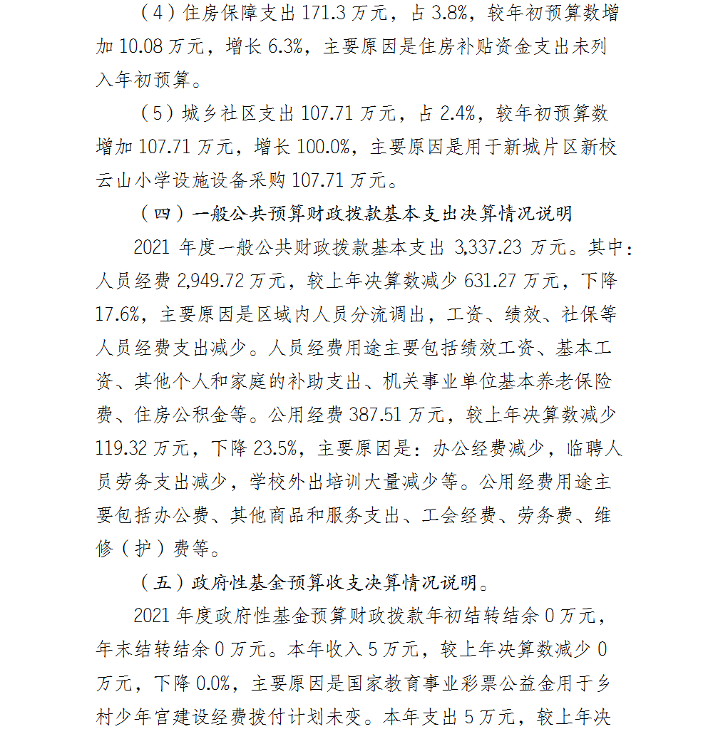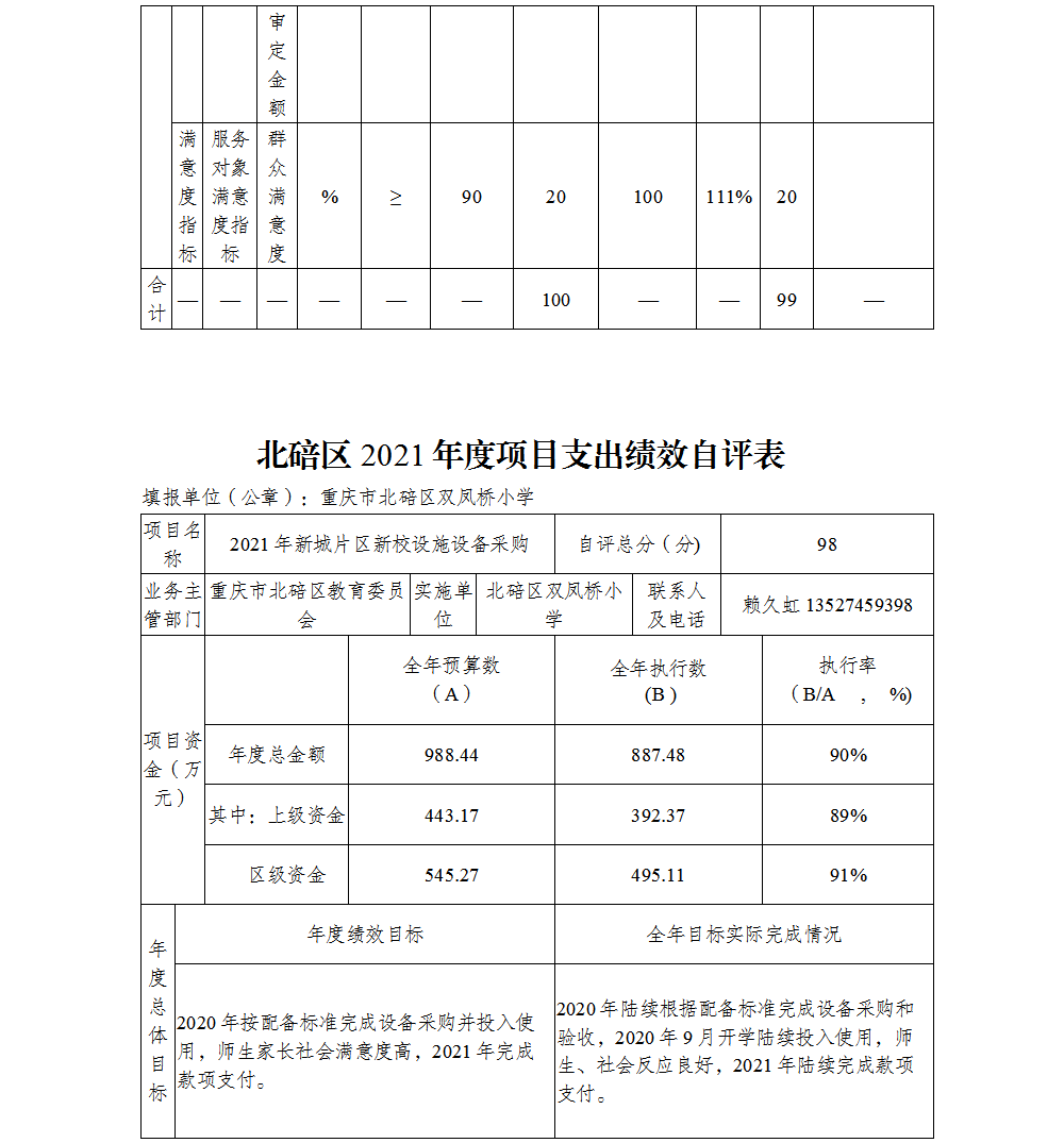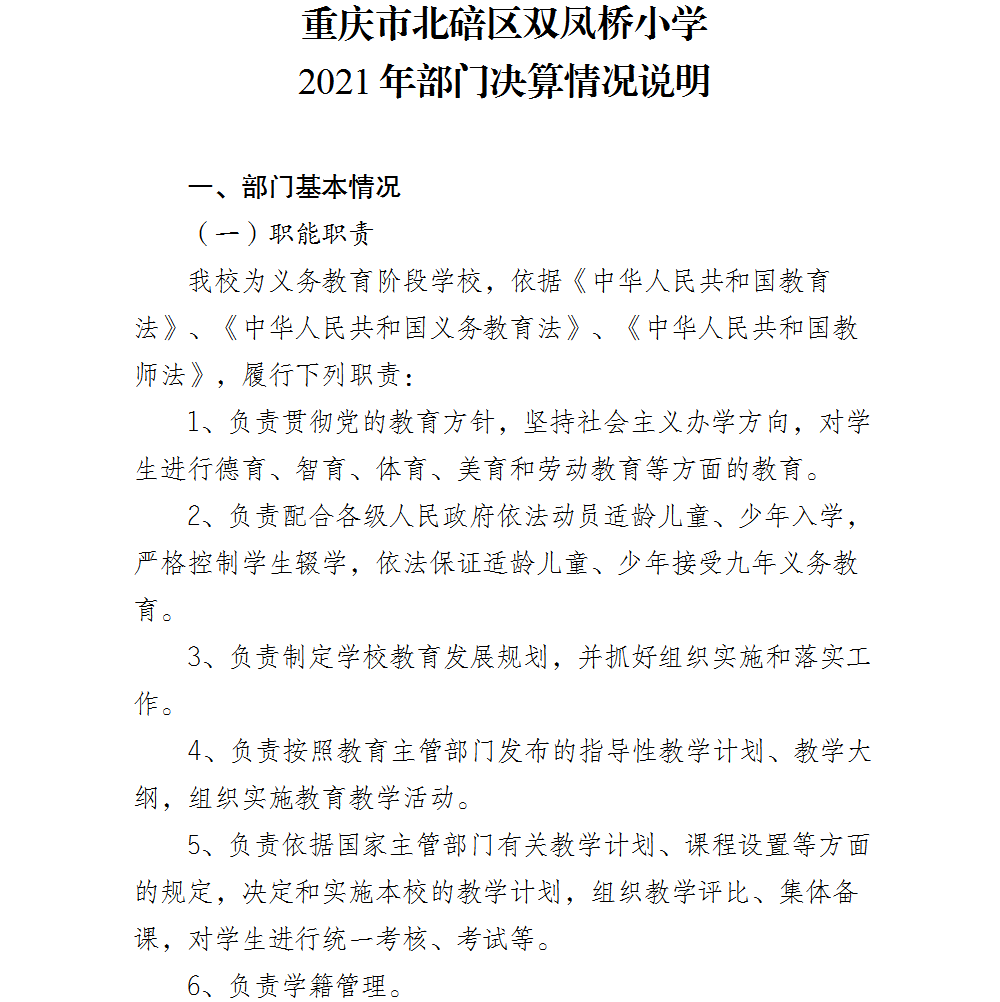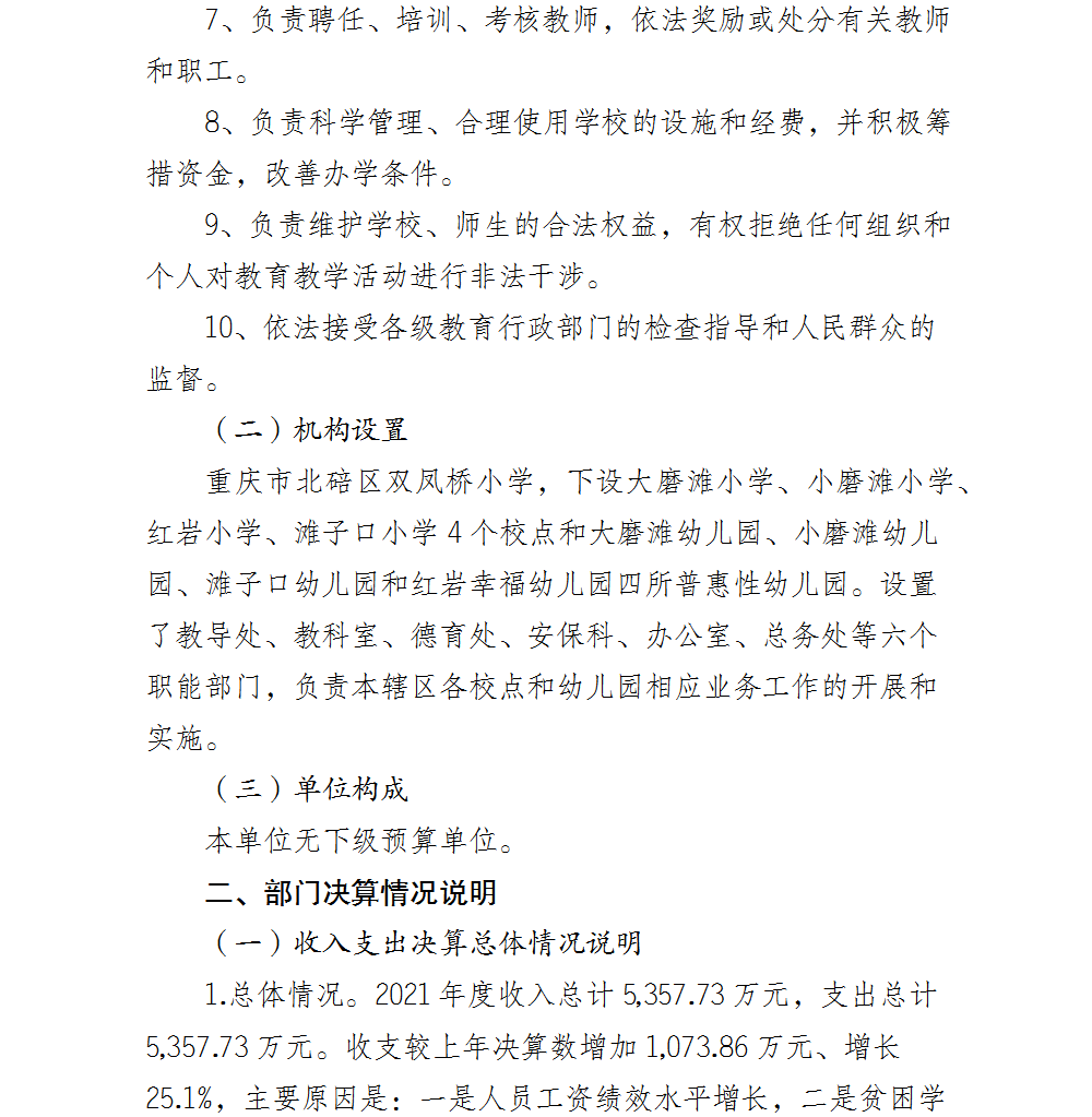 重庆市北碚区双凤桥小学2021年部门决算情况说明