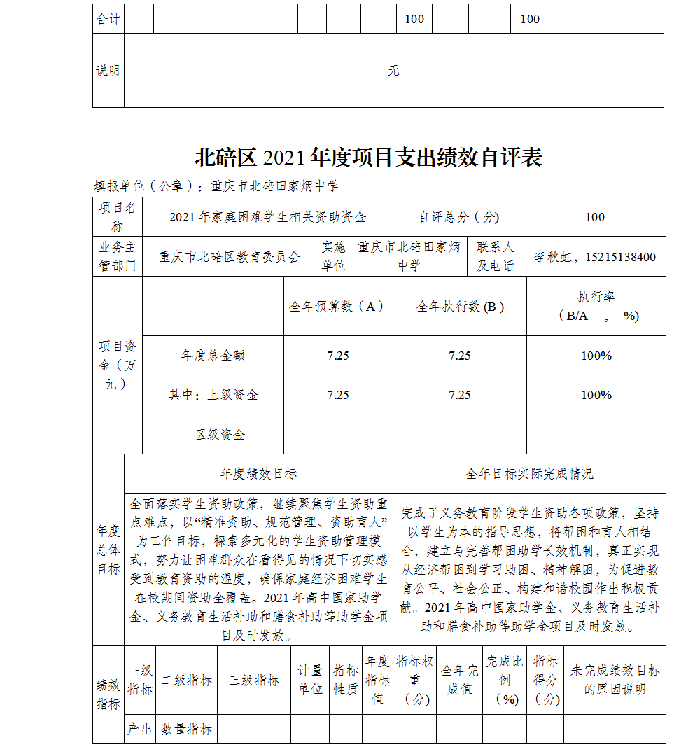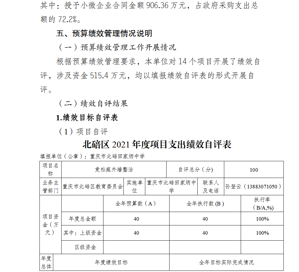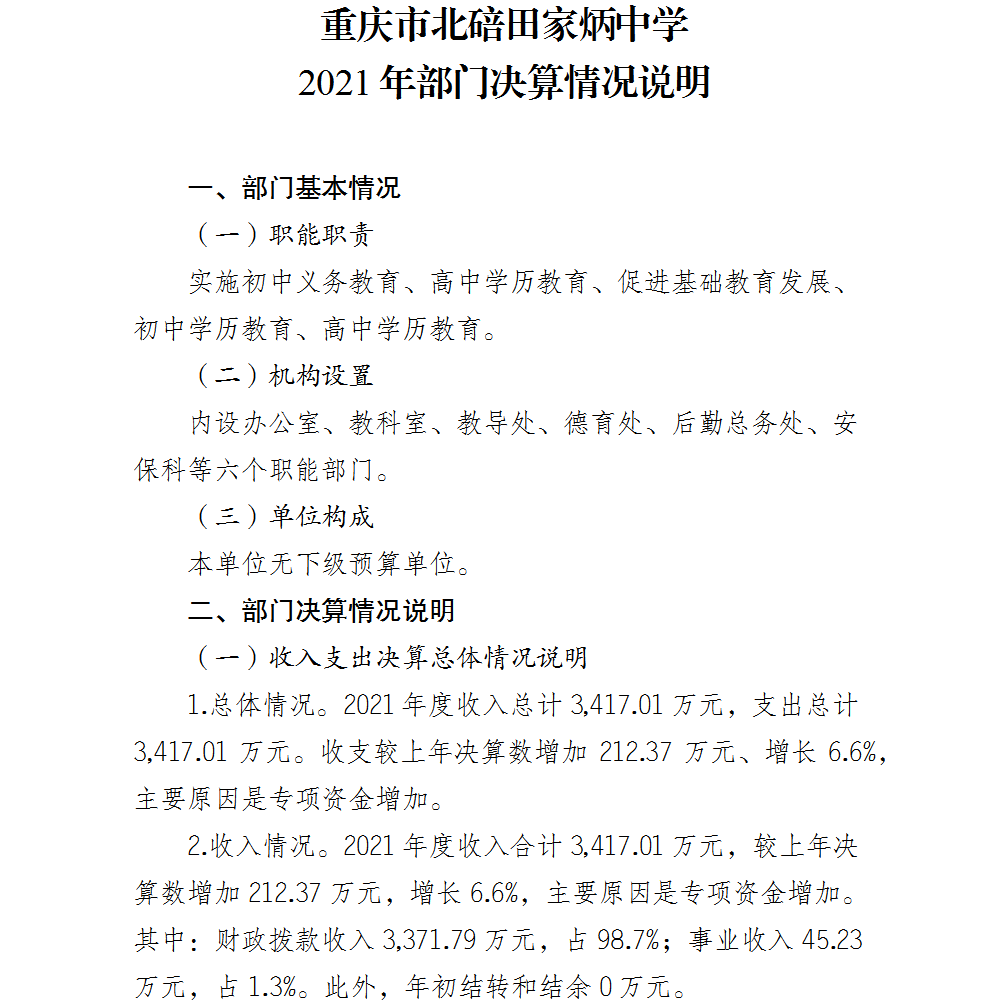 重庆市北碚田家炳中学2021年部门决算情况说明