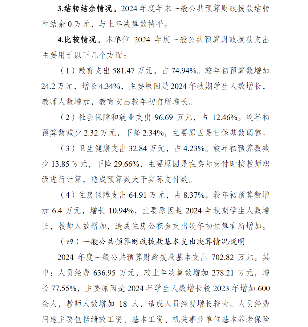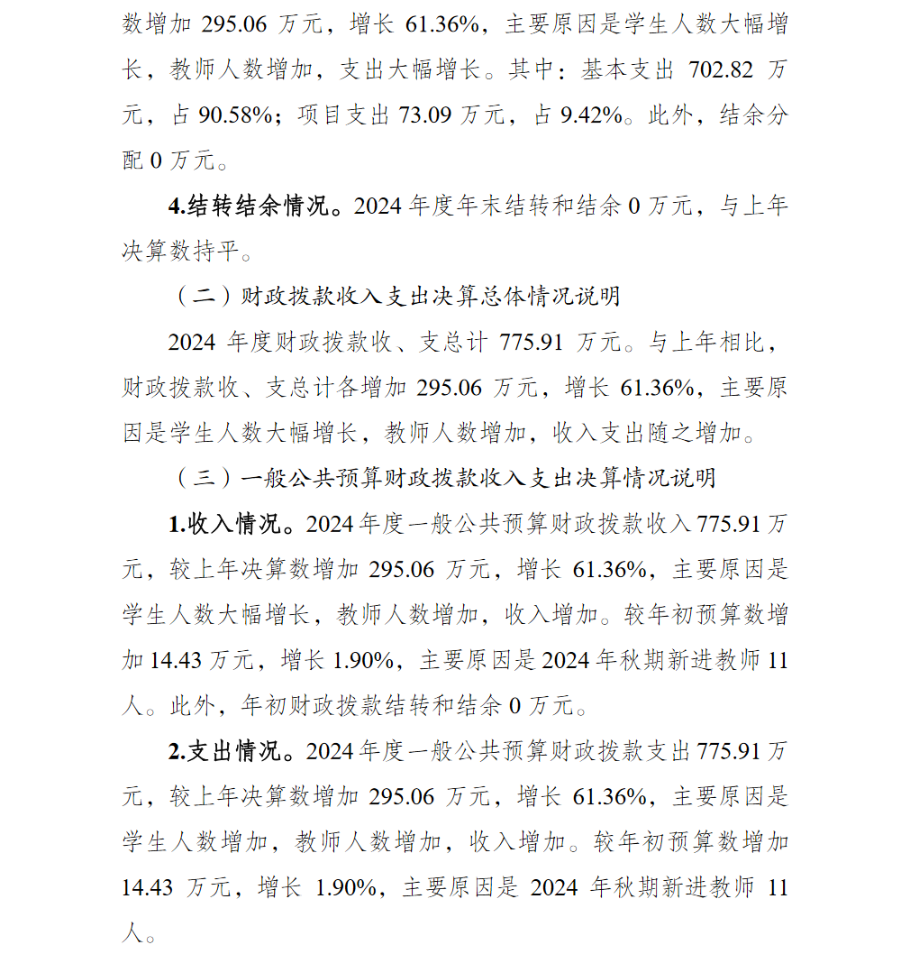 重庆市北碚区锦林小学2024年度单位决算情况说明