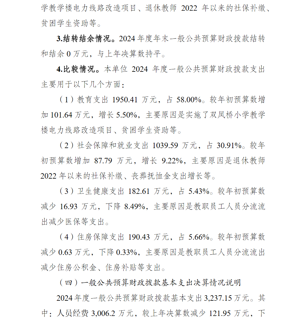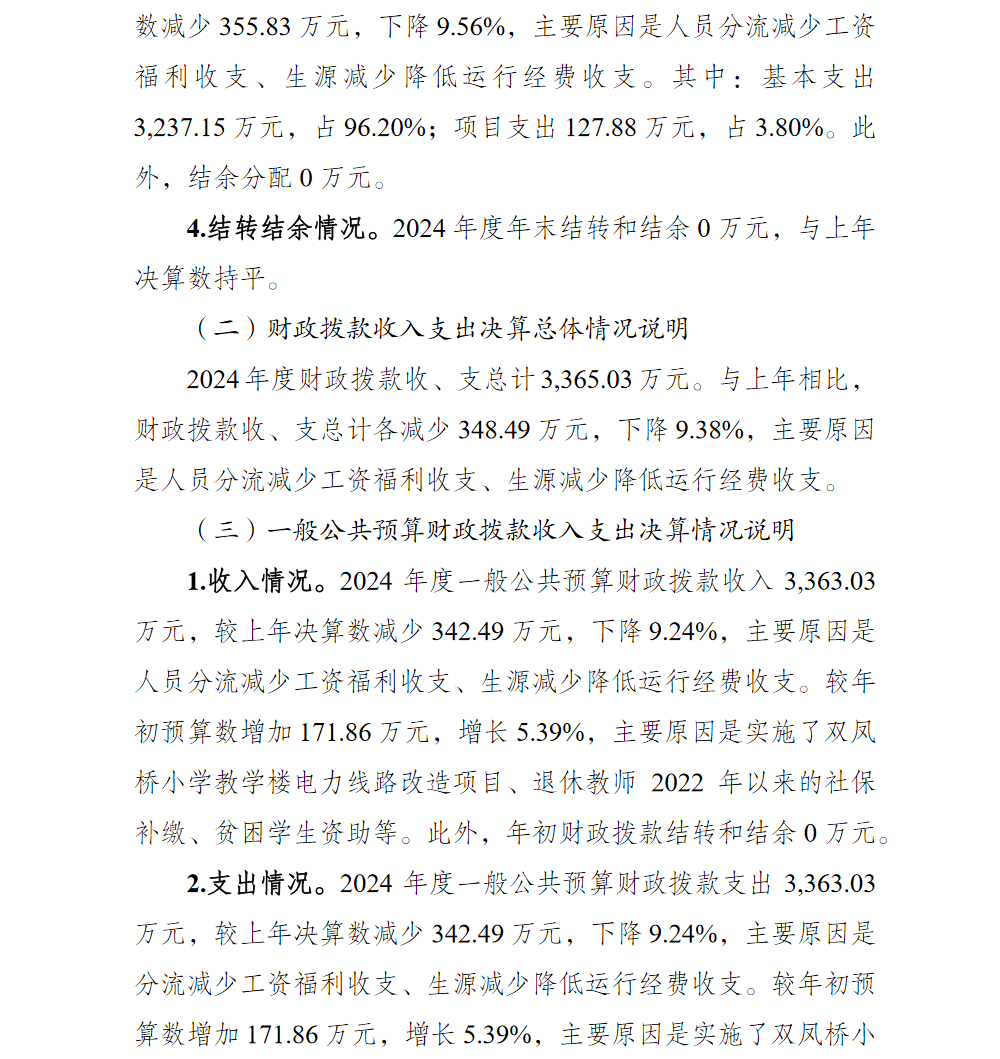重庆市北碚区双凤桥小学2024年度单位决算情况说明