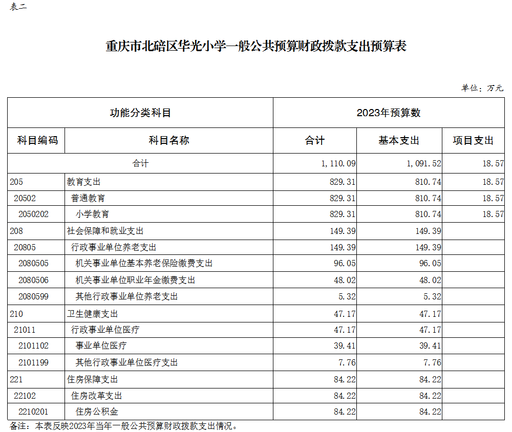 重庆市北碚区华光小学2023 年单位预算情况说明