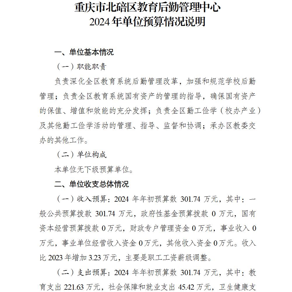 重庆市北碚区教育后勤管理中心2024年单位预算情况说明及附表.pdf