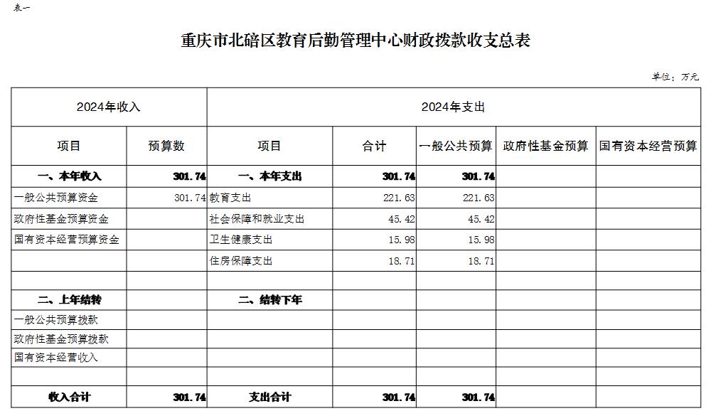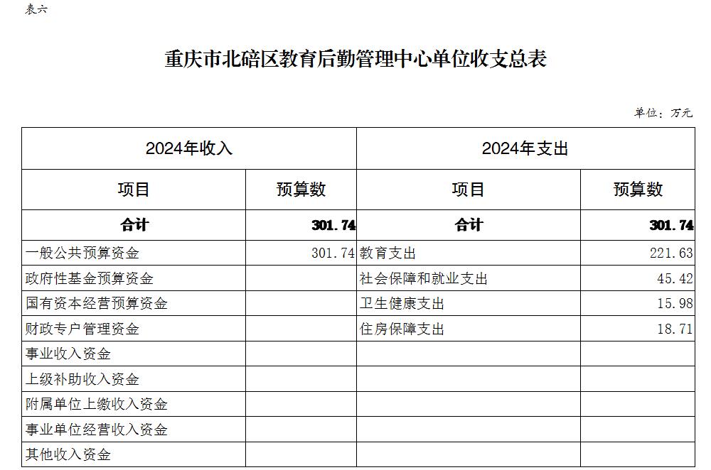 重庆市北碚区教育后勤管理中心2024年单位预算情况说明