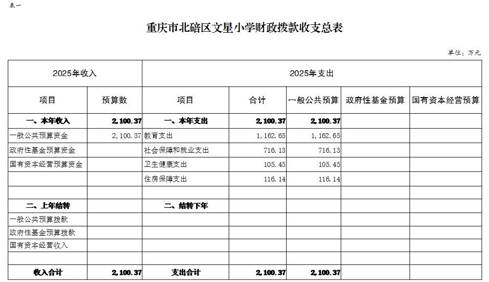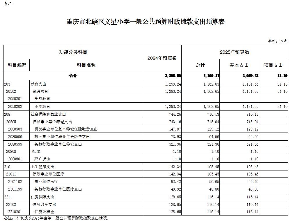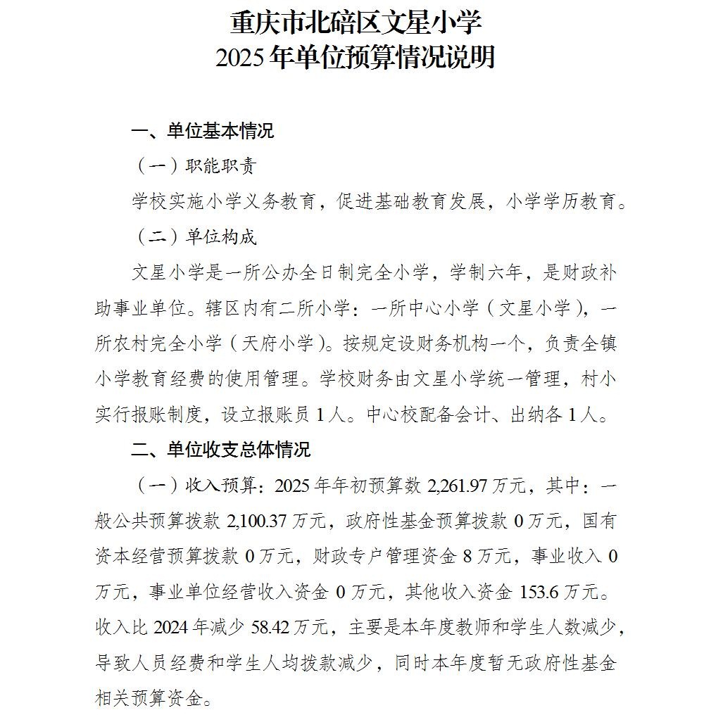 重庆市北碚区文星小学2025年单位预算情况说明及附表.pdf
