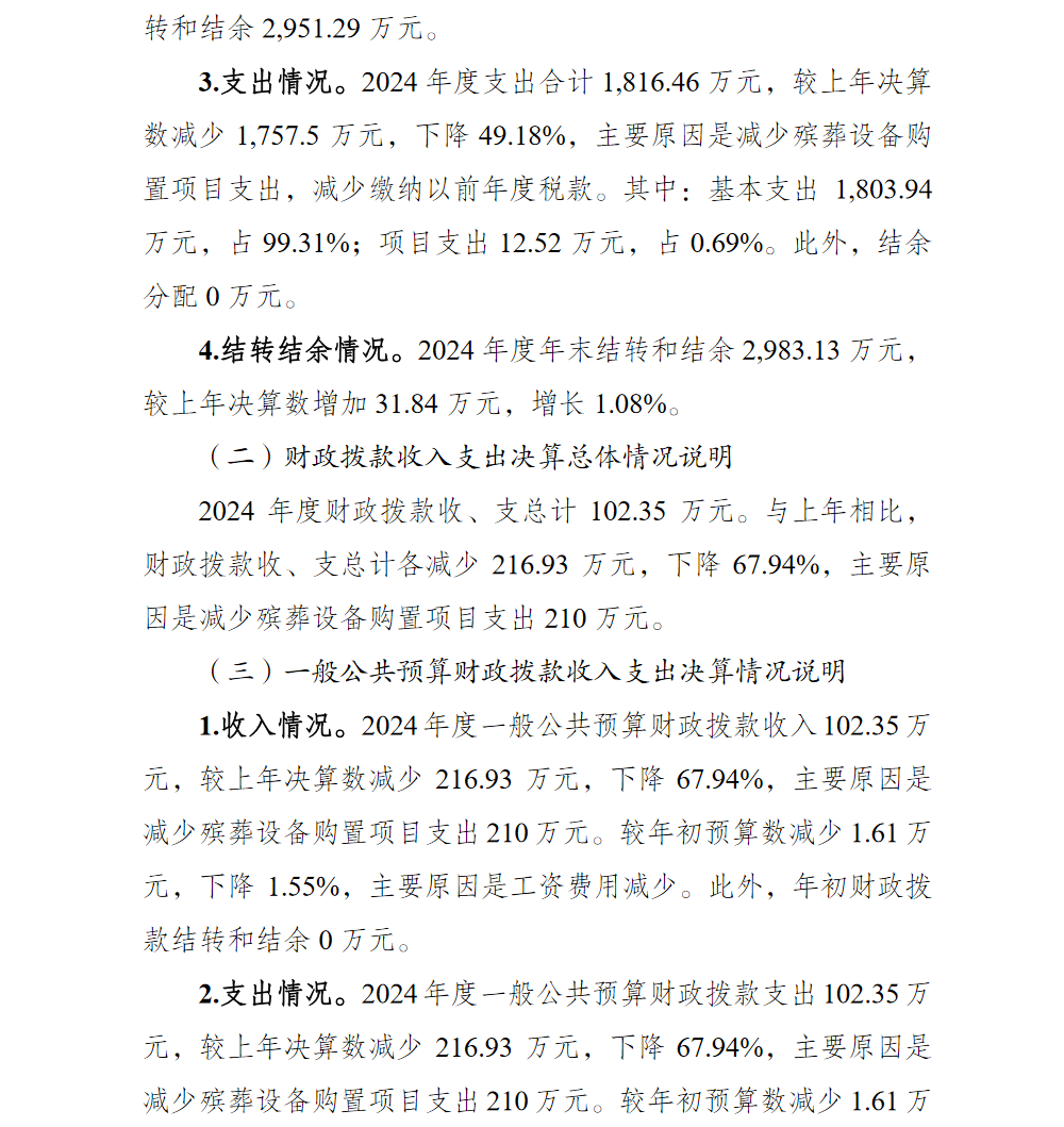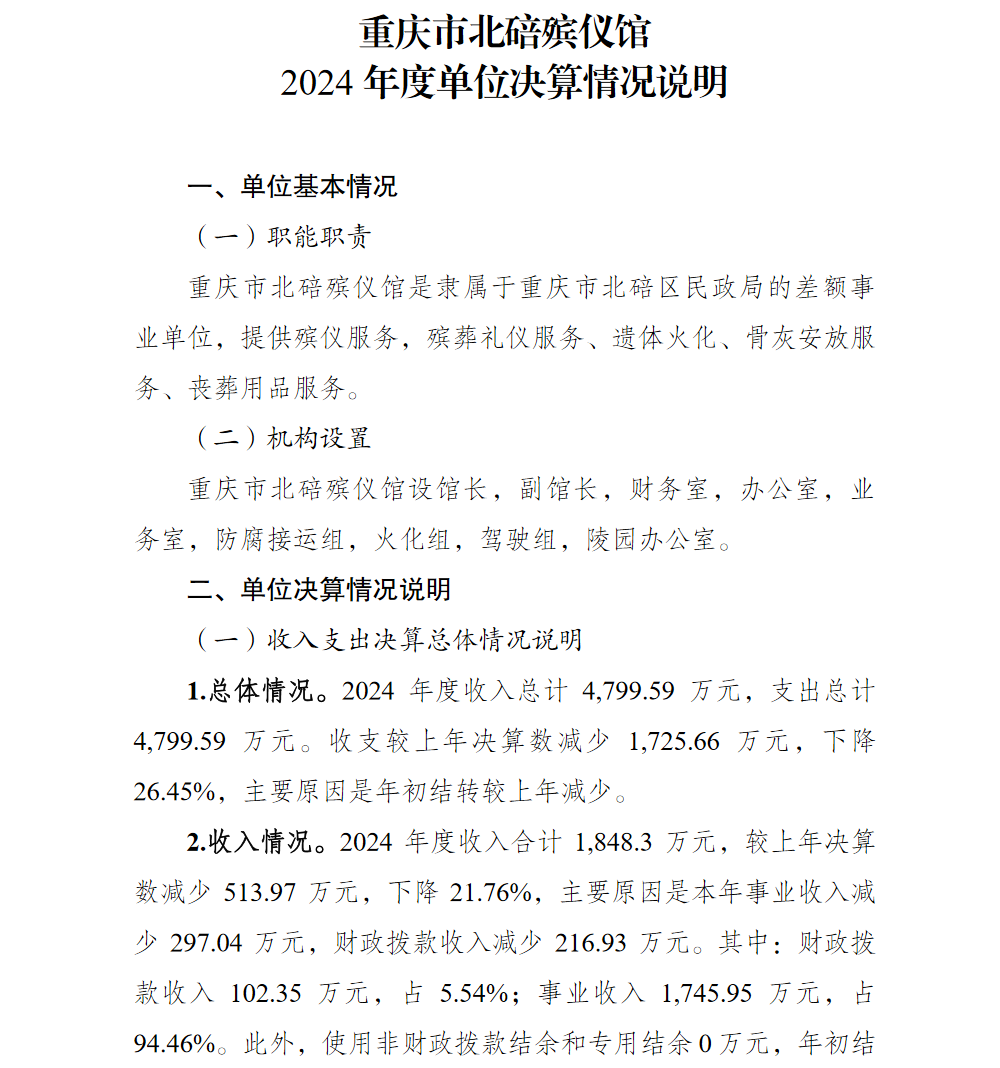 重庆市北碚殡仪馆2024年度单位决算情况说明