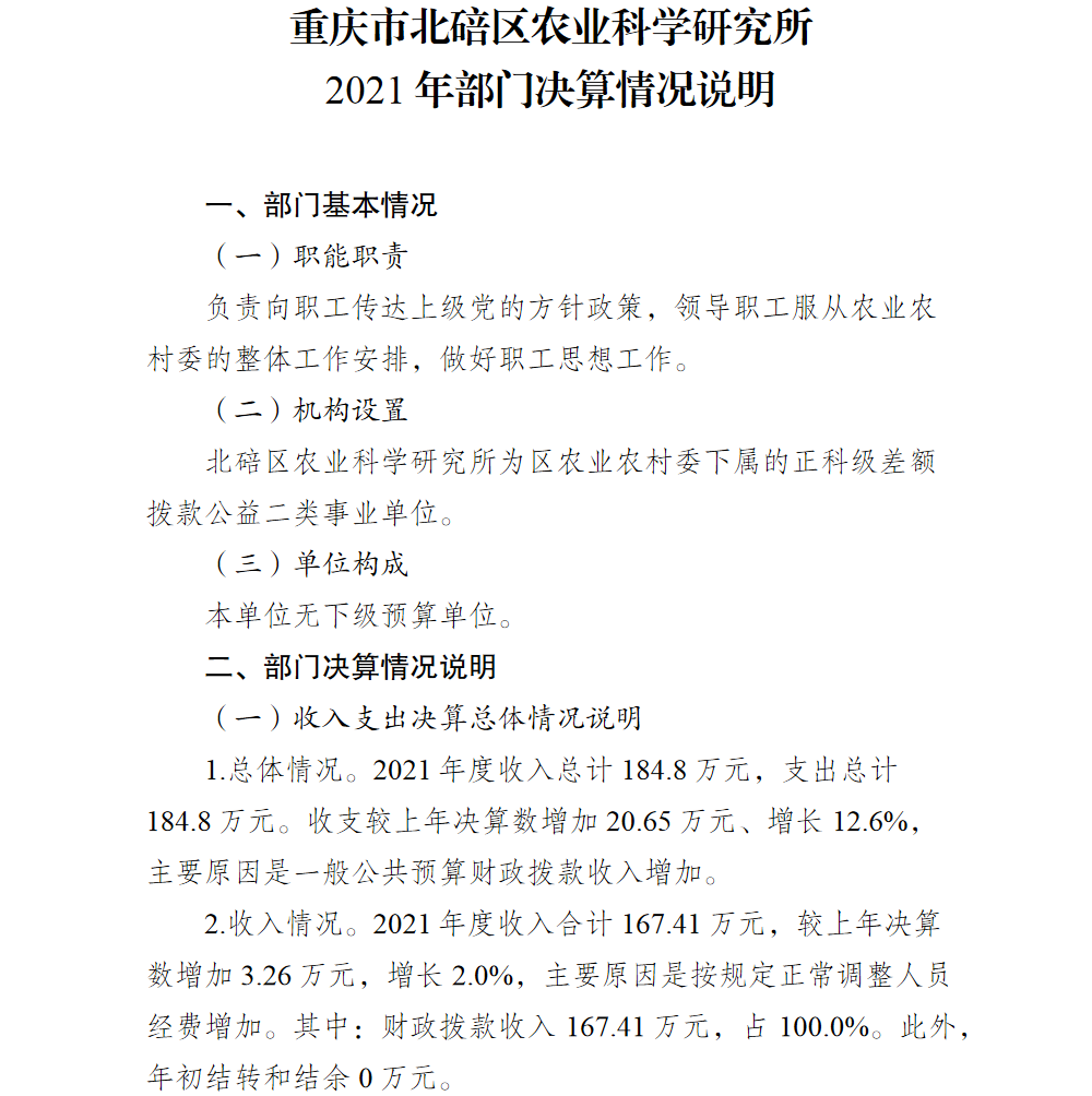 重庆市北碚区农业科学研究所2021年部门决算情况说明及报表.pdf
