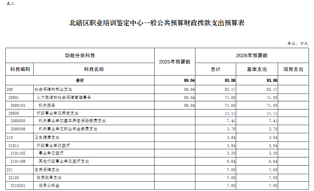 北碚区职业培训鉴定中心2026年单位预算情况说明及附表