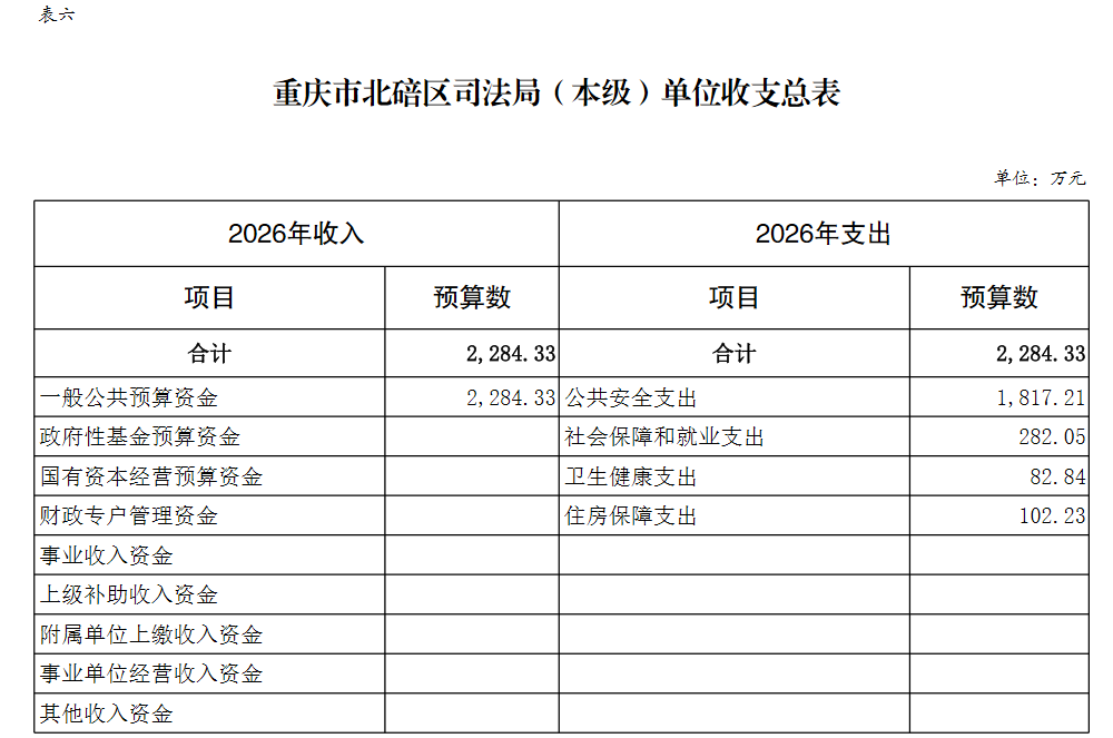 重庆市北碚区司法局(本级)2026年单位预算情况说明