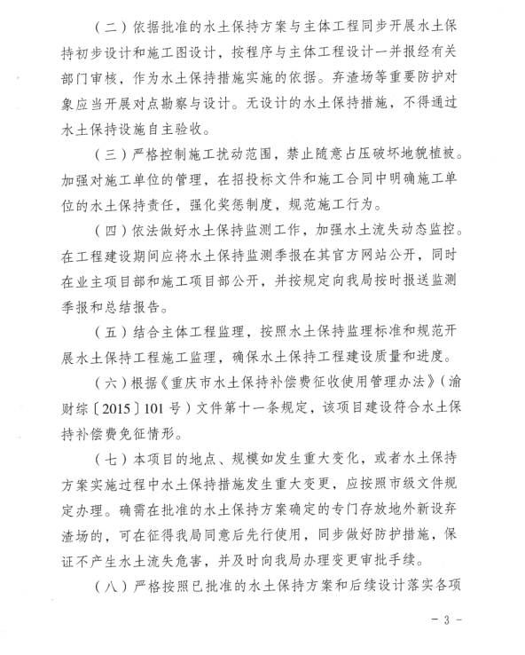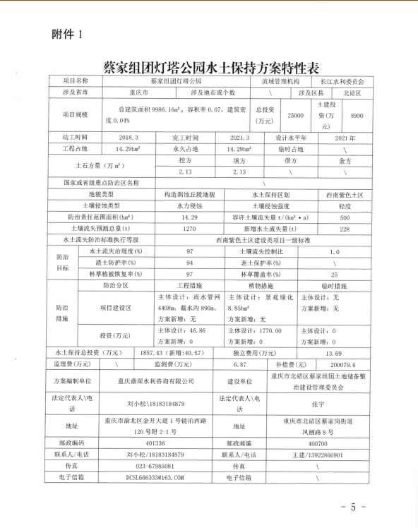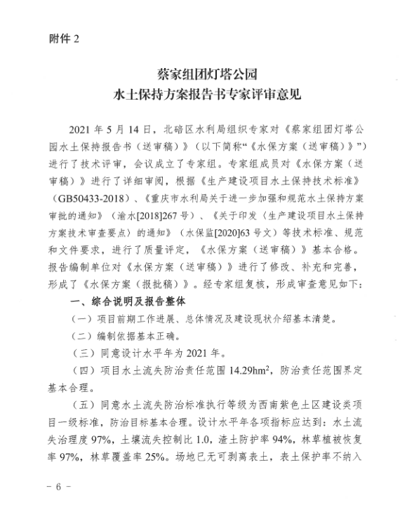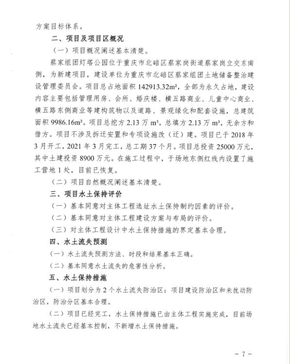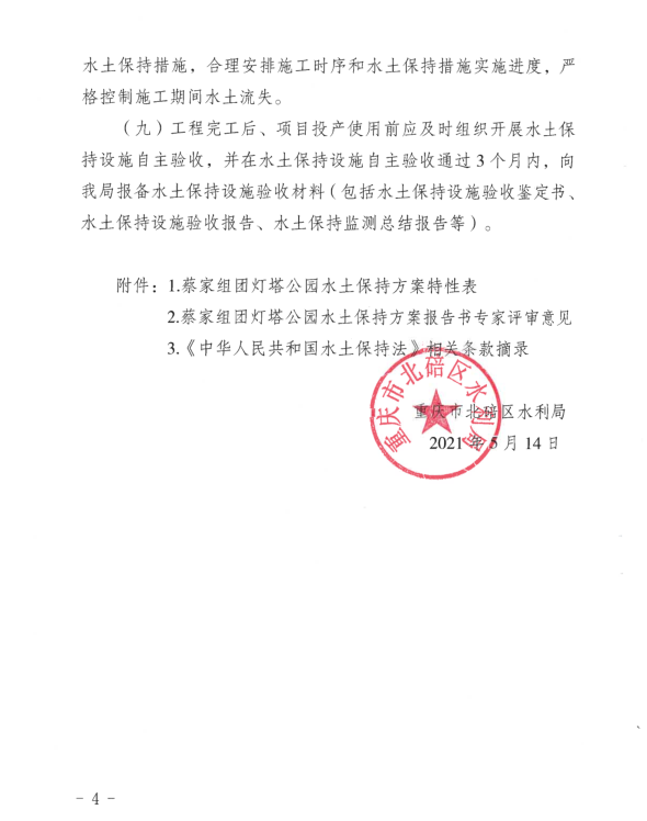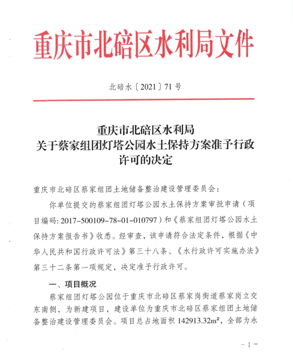重庆市北碚区水利局关于蔡家组团灯塔公园水土保持方案准予行政许可的决定