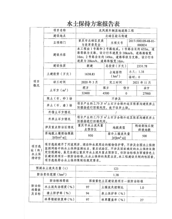 龙凤溪车辆基地道路工程水土保持方案报告表