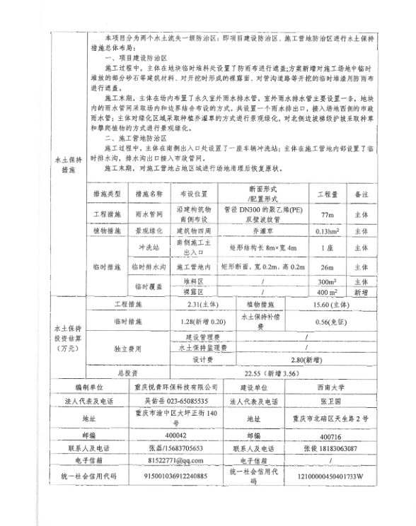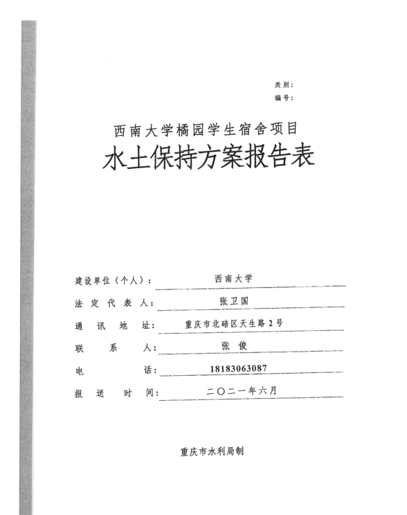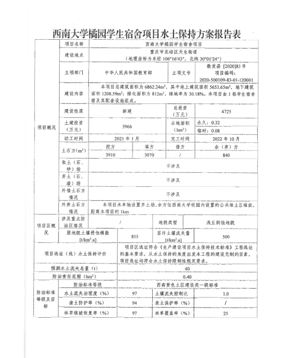 西南大学橘园学生宿舍项目水土保持方案报告表