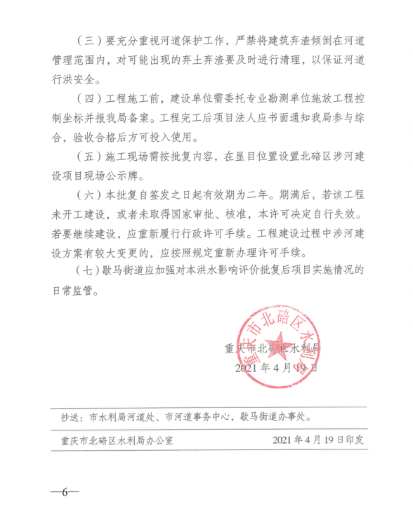 重庆市北碚区水利局关于北碚中坝社特勤消防基地段梁滩河左岸护坡工程洪水影响评价报告的批复