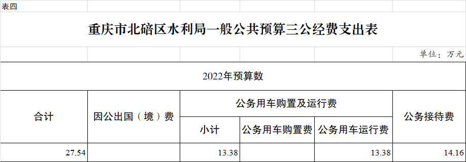 2022年“三公”经费预算27.54万元,比2021年增加0万元。其中:因公出国(境)费用0万元,比2021年增加0万元,主要原因是无因公出国费用;公务接待费14.16万元,比2021年增加0万元,主要原因是缩减了接待开支;公务用车运行维护费13.38万元,比2021年增加0万元,主要原因是公务用车减少;公务用车购置费0万元,比2021年增加0万元;主要原因是无公务购车预算。