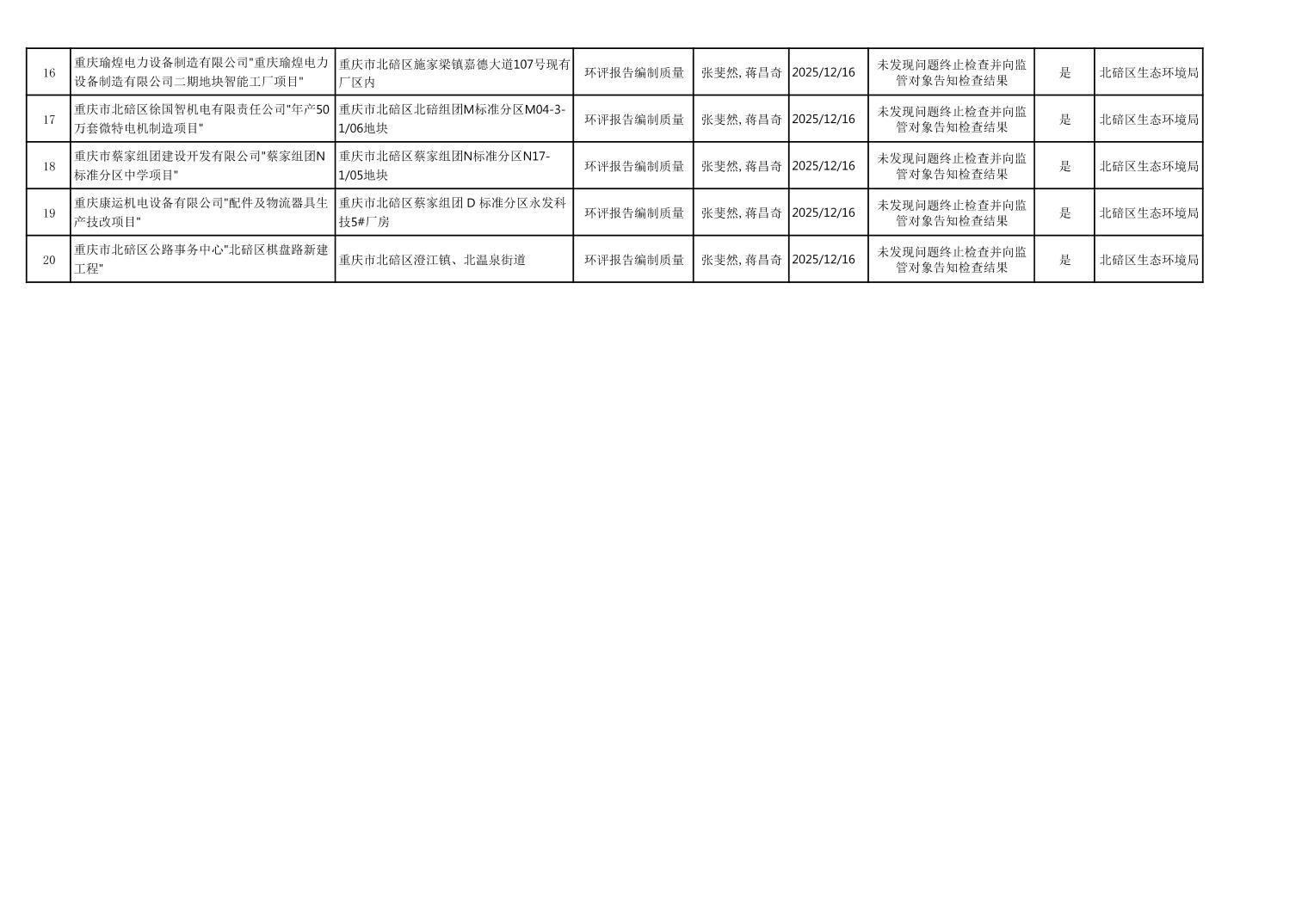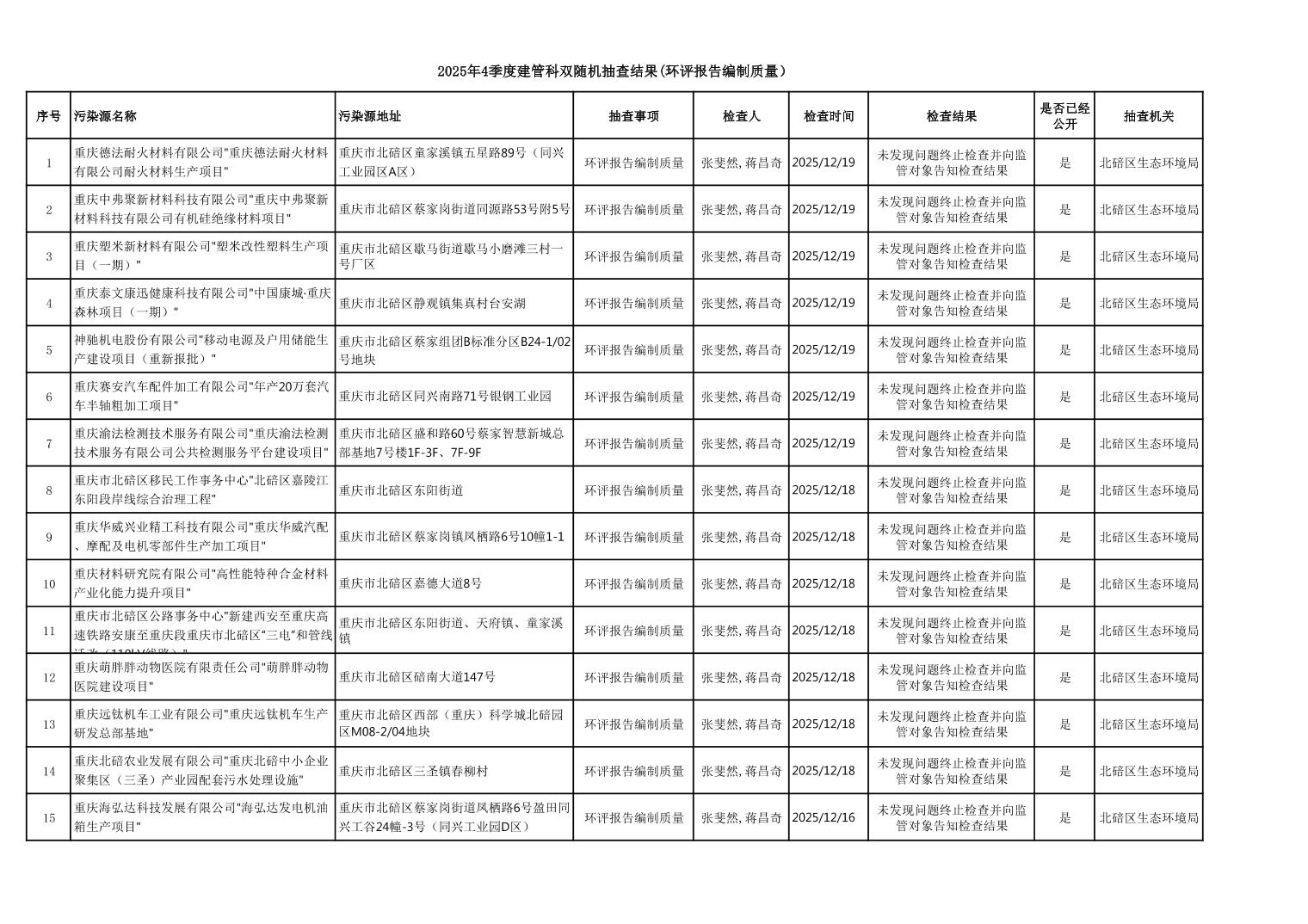 2025年4季度建管科双随机抽查结果(环评报告编制质量)