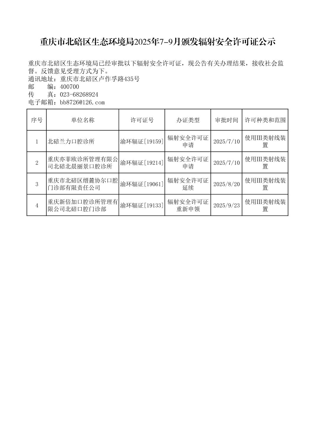 辐射安全许可证办理结果公开