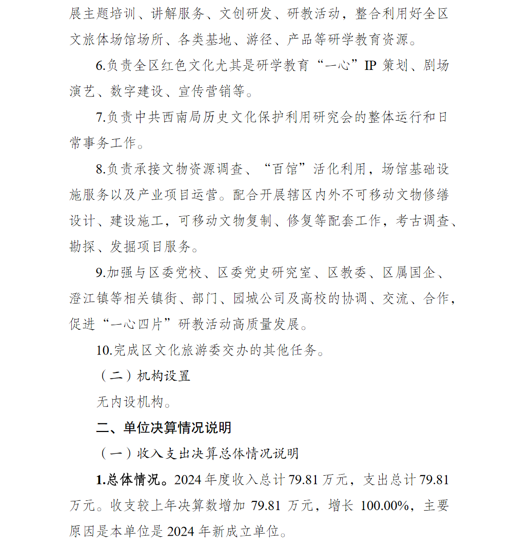 重庆市北碚区中共西南局缙云山办公地旧址保护利用研究中心2024年单位决算情况说明