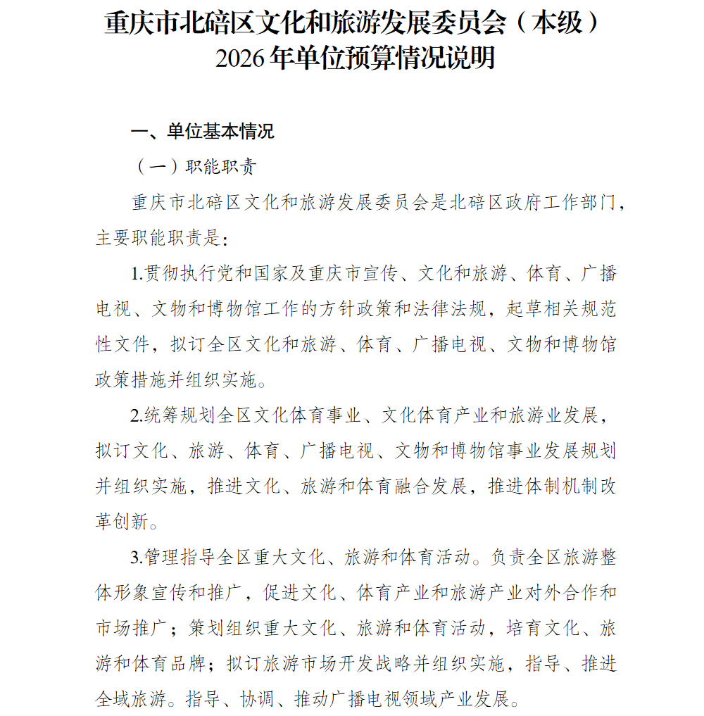 重庆市北碚区文化和旅游发展委员会(本级)2026年单位预算情况说明