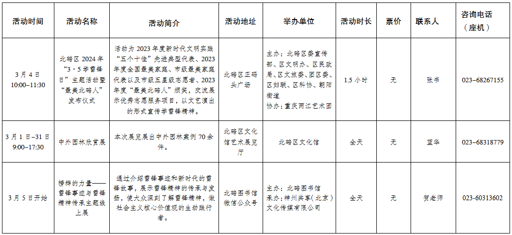 北碚区2024年3月主要展演信息预告