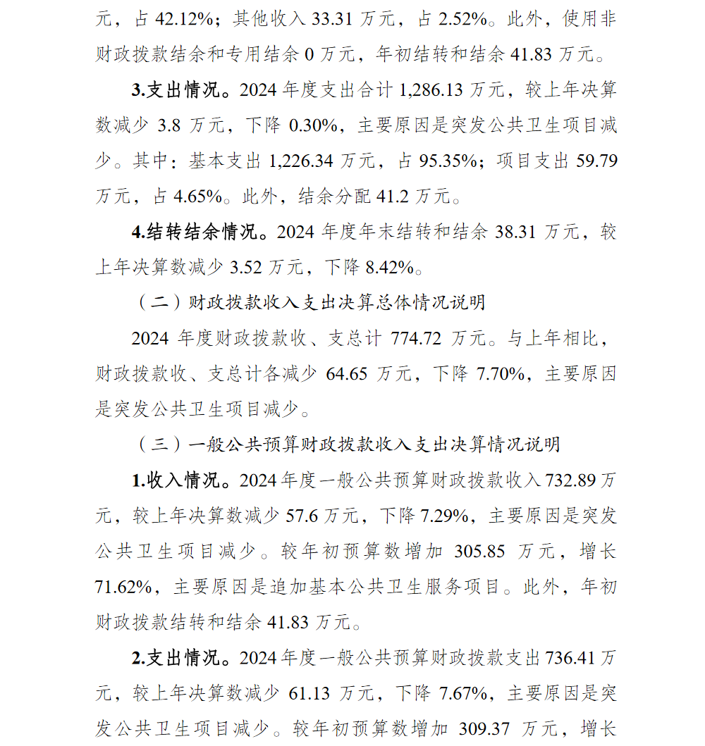 重庆市北碚区天府镇卫生院2024年单位决算情况说明