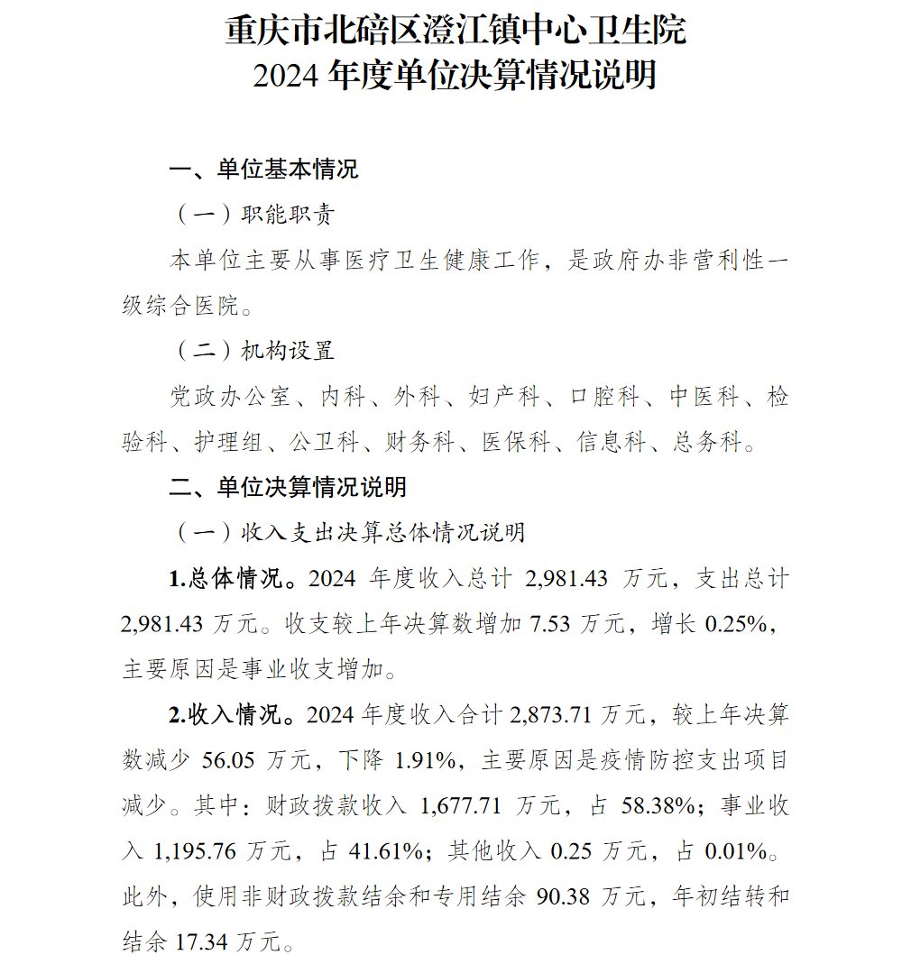 重庆市北碚区澄江镇中心卫生院2024年单位决算情况说明
