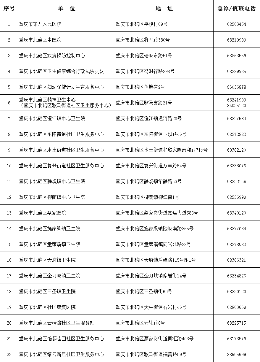 重庆市北碚区卫生健康委下属事业单位信息公开