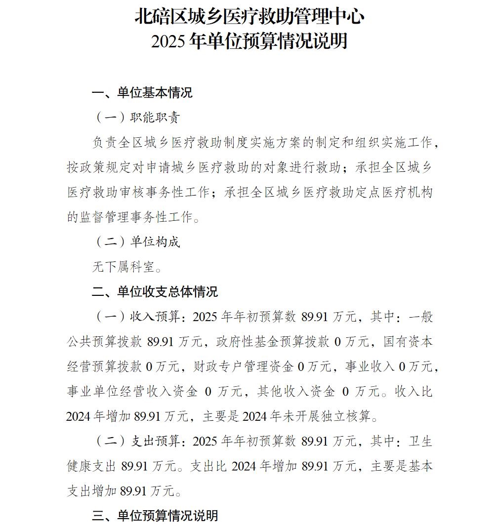 北碚区城乡医疗救助管理中心2025年单位预算情况说明