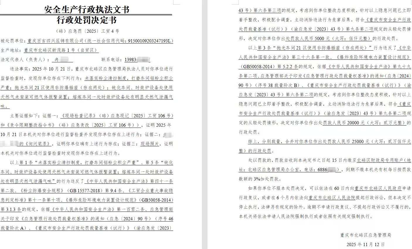 (碚)应急罚〔2025〕工贸4号
