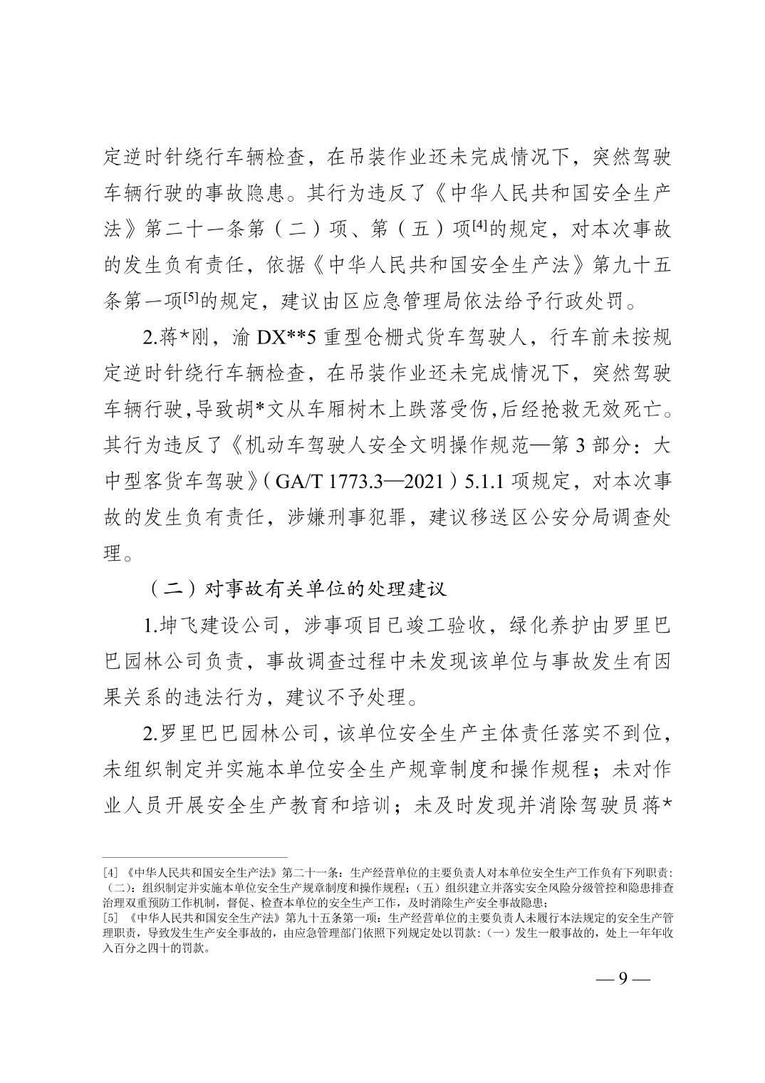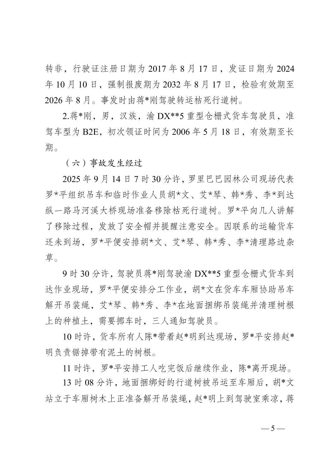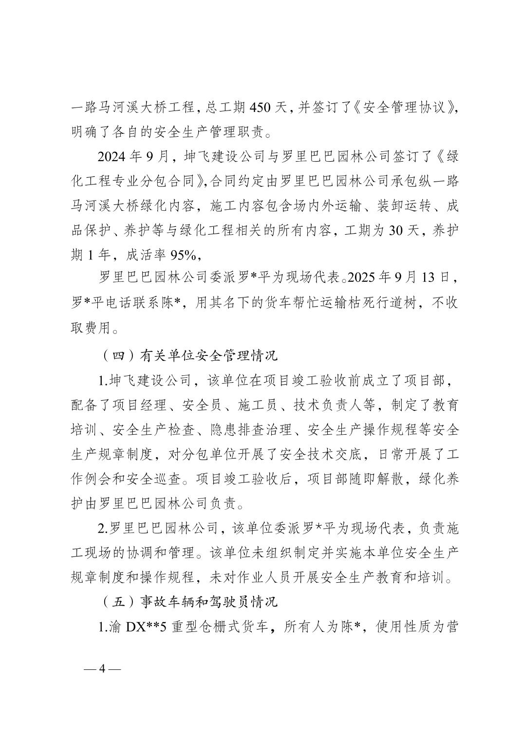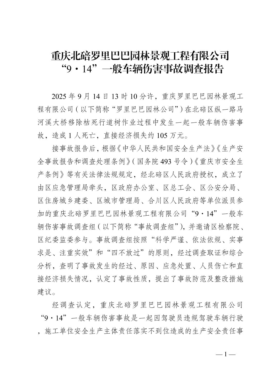 重庆北碚罗里巴巴园林景观工程有限公司“9·14”一般车辆伤害事故调查报告