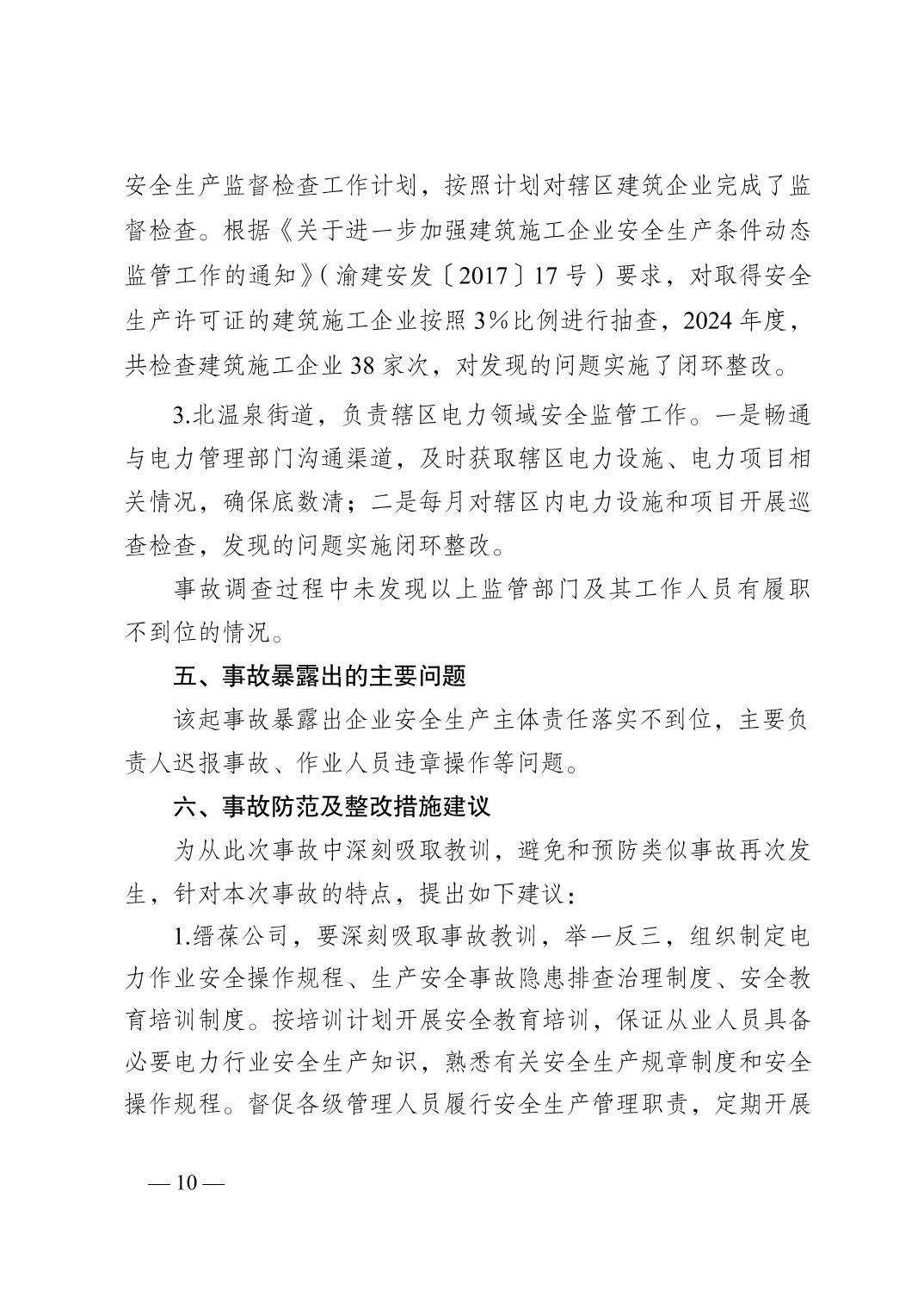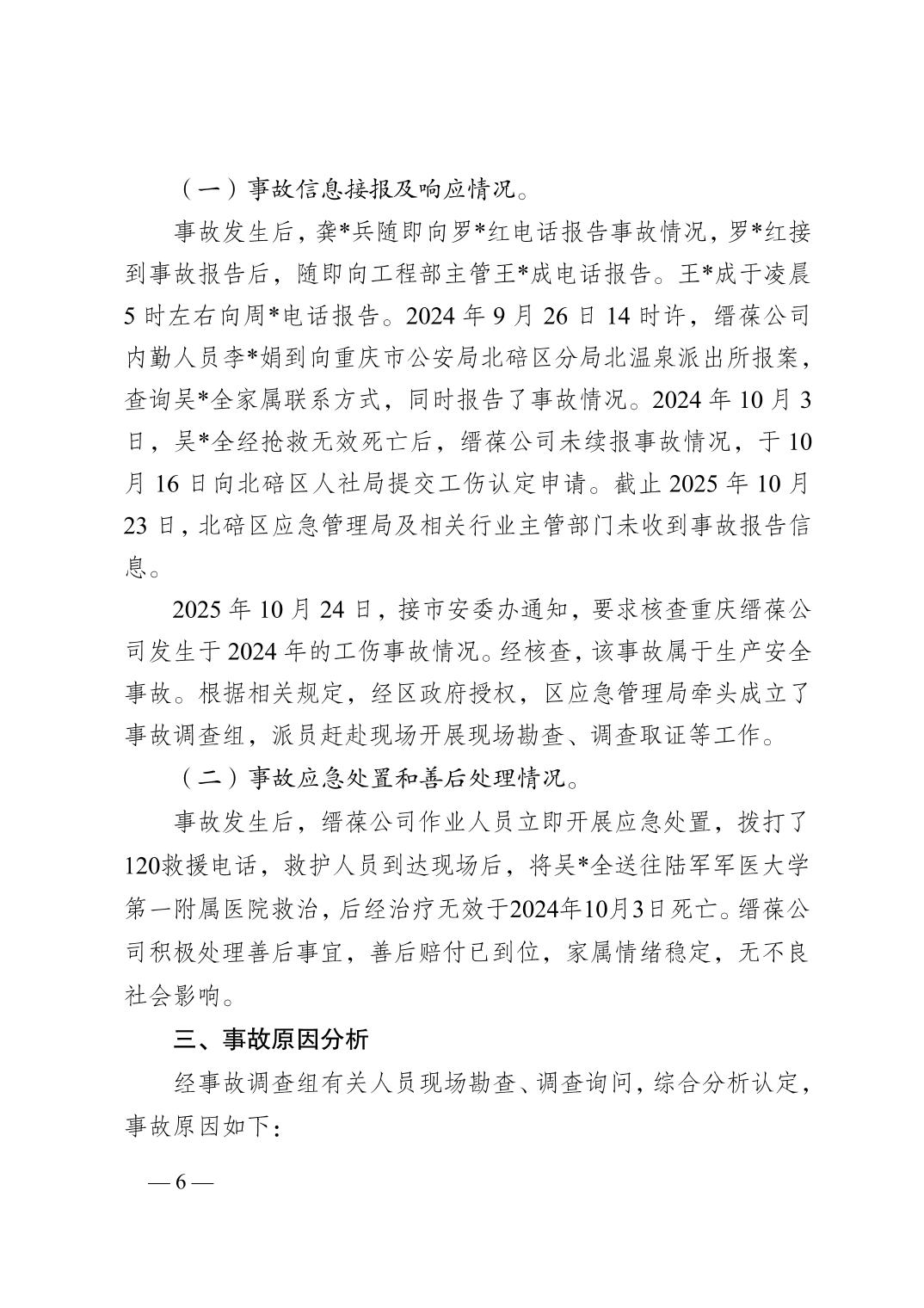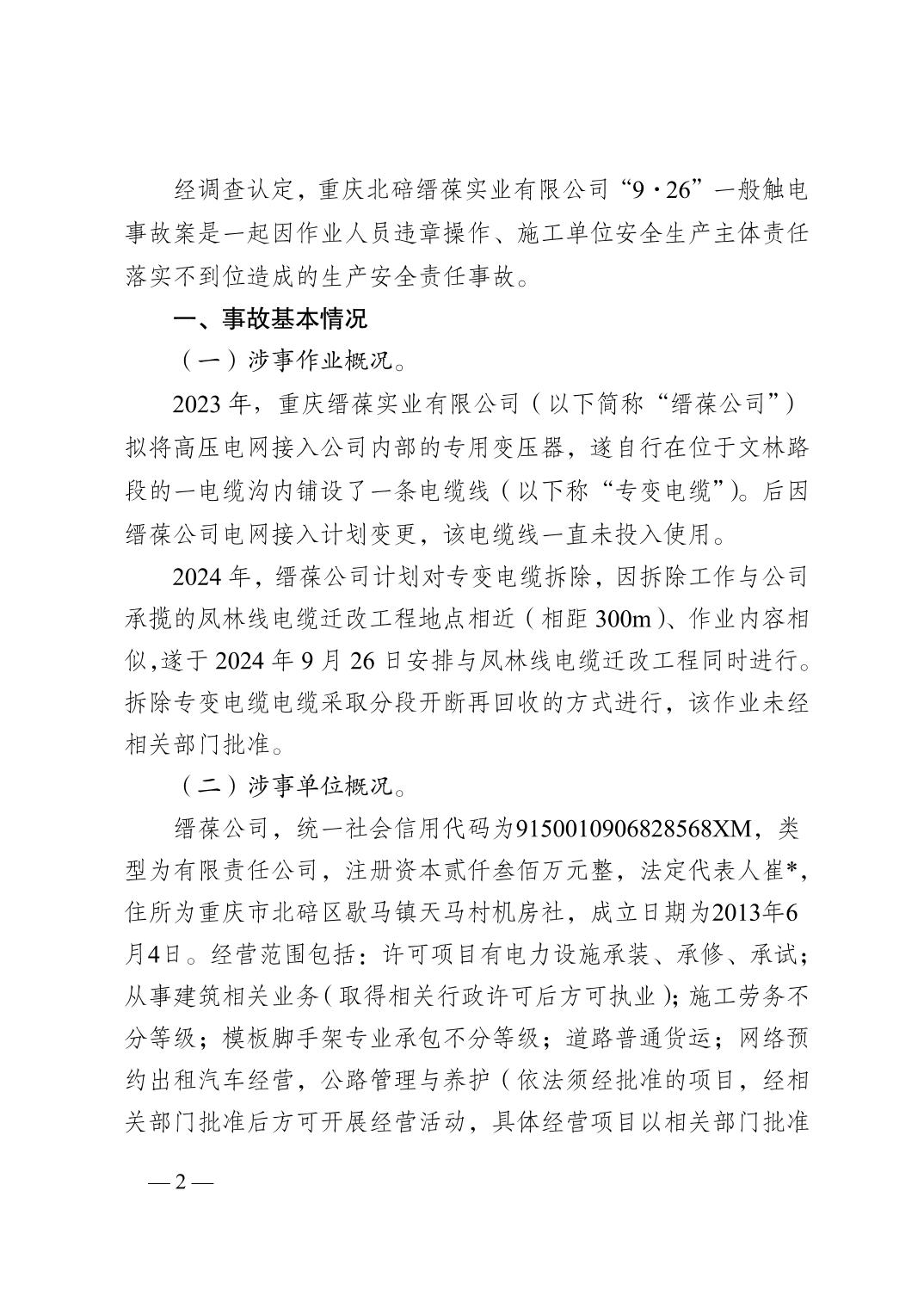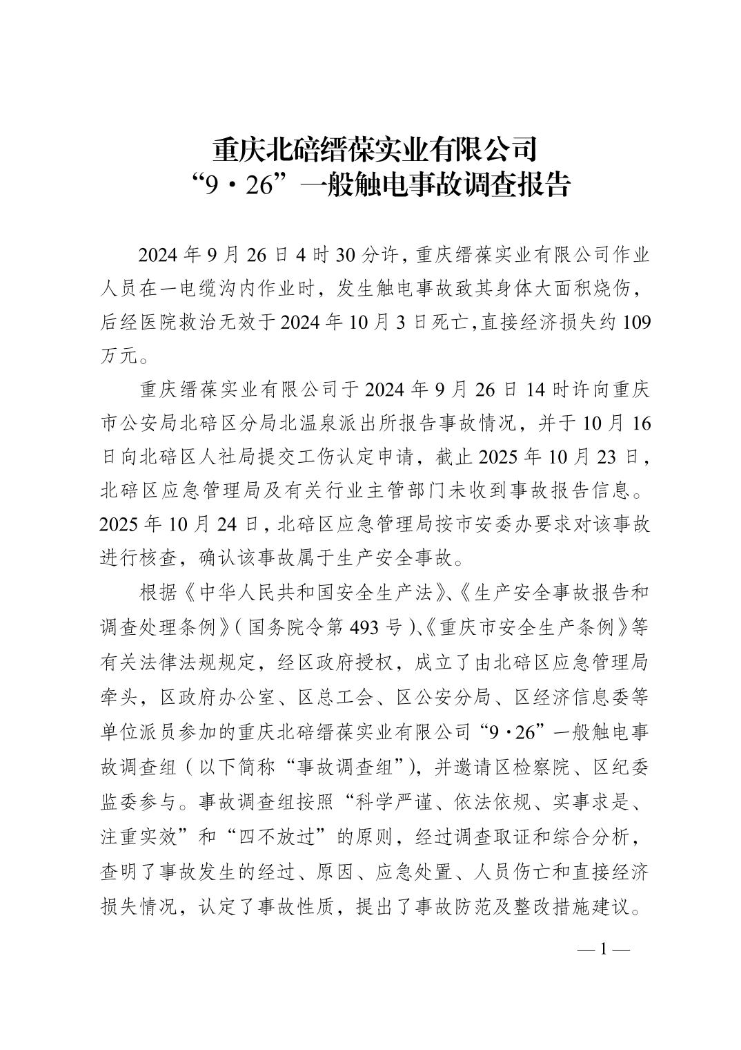 重庆北碚缙葆实业有限公司“9·26”一般触电事故调查报告