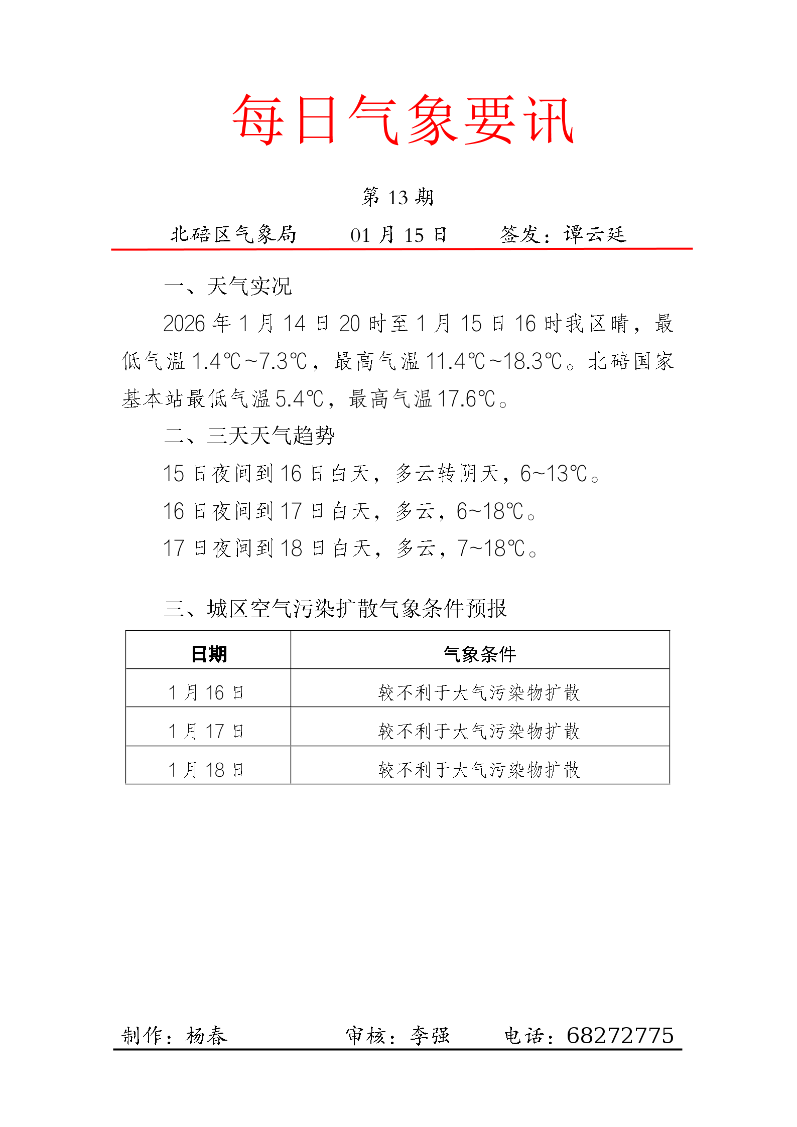 重要天气快报(2026.01.15)