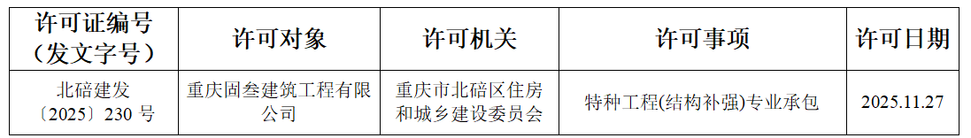 重庆市北碚区住房和城乡建设委员会行政许可结果事项公告(建筑业企业资质2025年第九批)