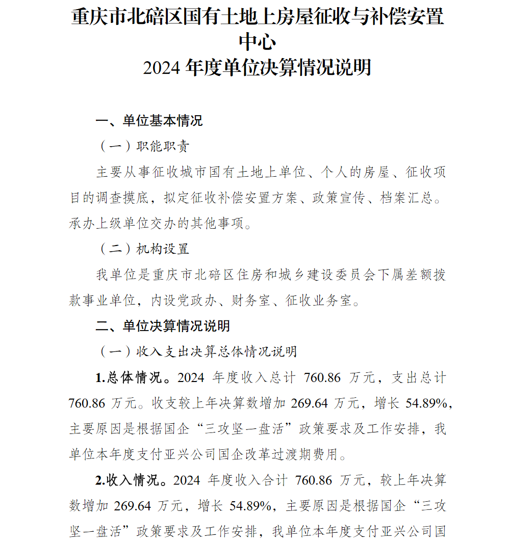 重庆市北碚区国有土地上房屋征收与补偿安置中心2024年单位决算情况说明