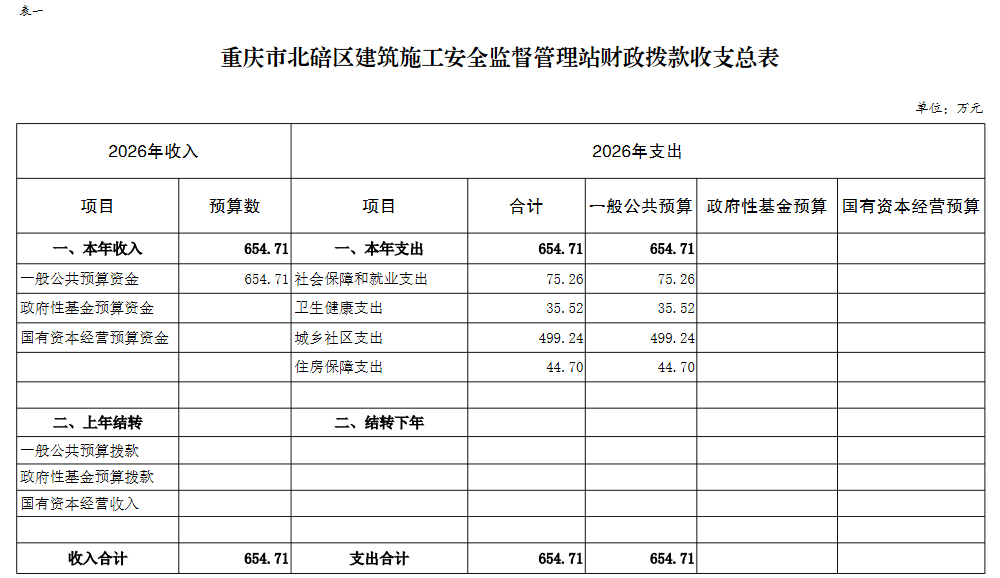 重庆市北碚区建筑施工安全监督管理站2026年单位预算情况说明